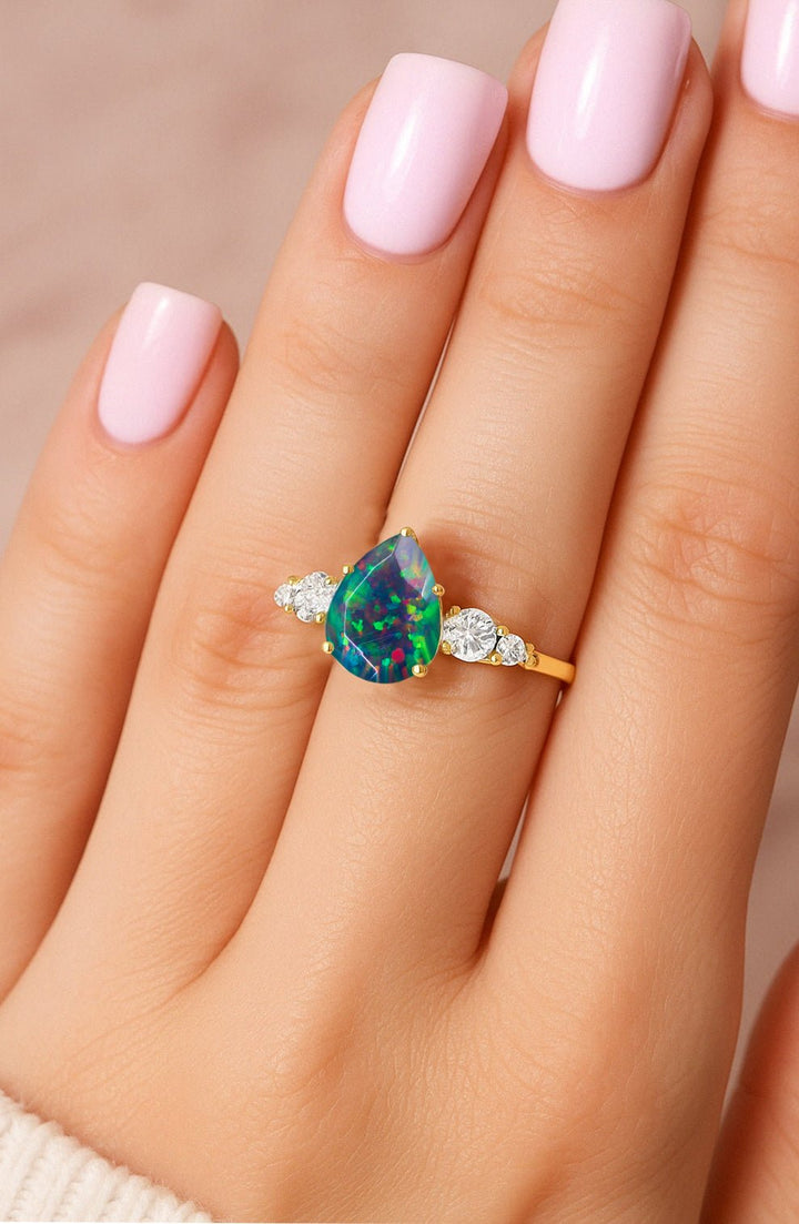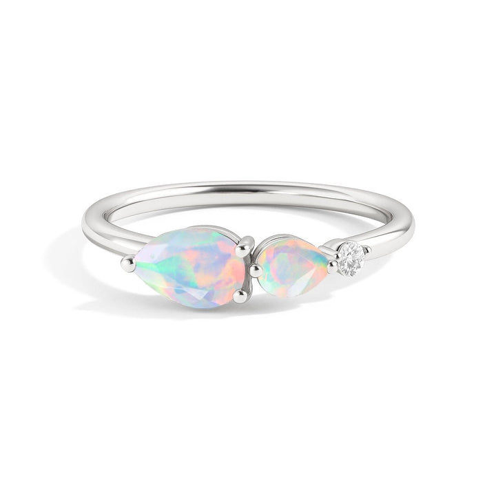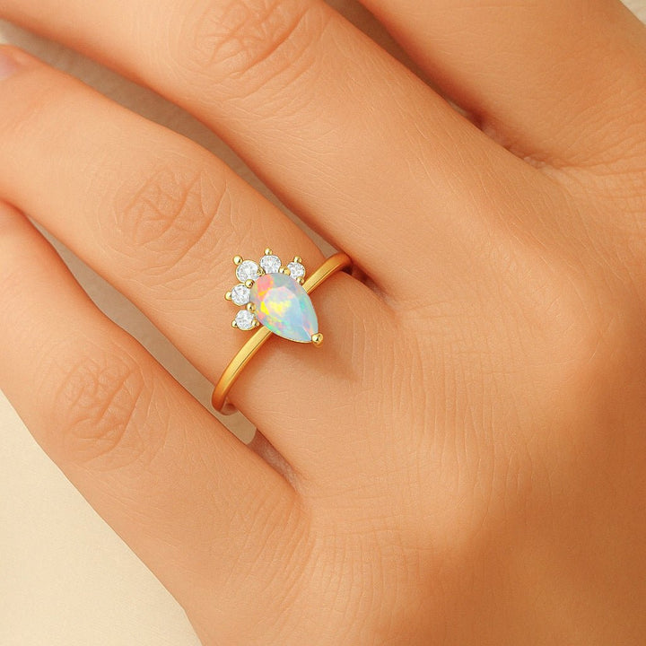 Elegant White Opal Pear Stone Ring in Gold & Silver