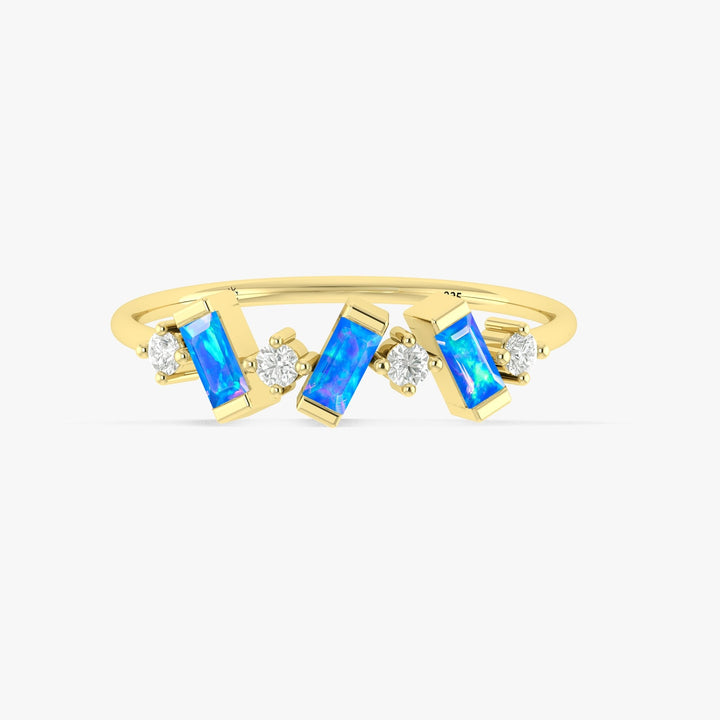 Blue Opal Two Stone Ring in Yellow Gold Filled & Silver