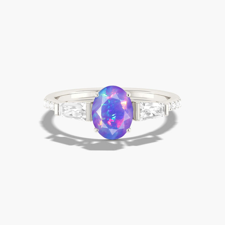 Natural Lavender Opal with Zircon Three Stone Engagement Ring