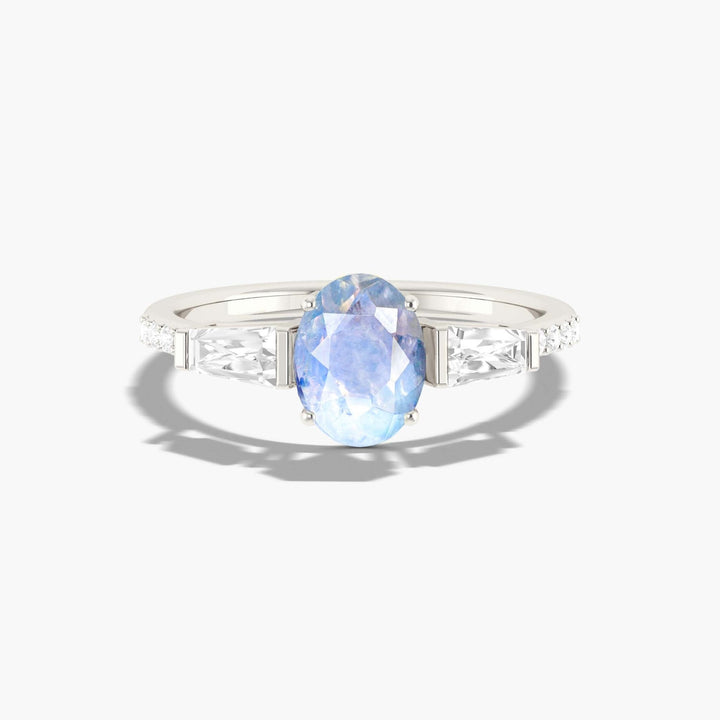 Natural Moonstone with White Zircon Side Stone Solitaire Ring