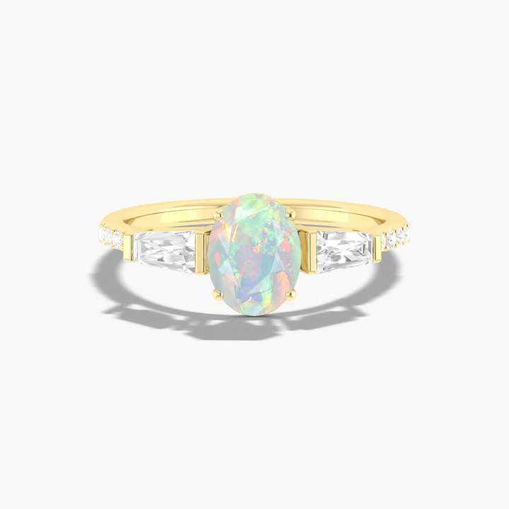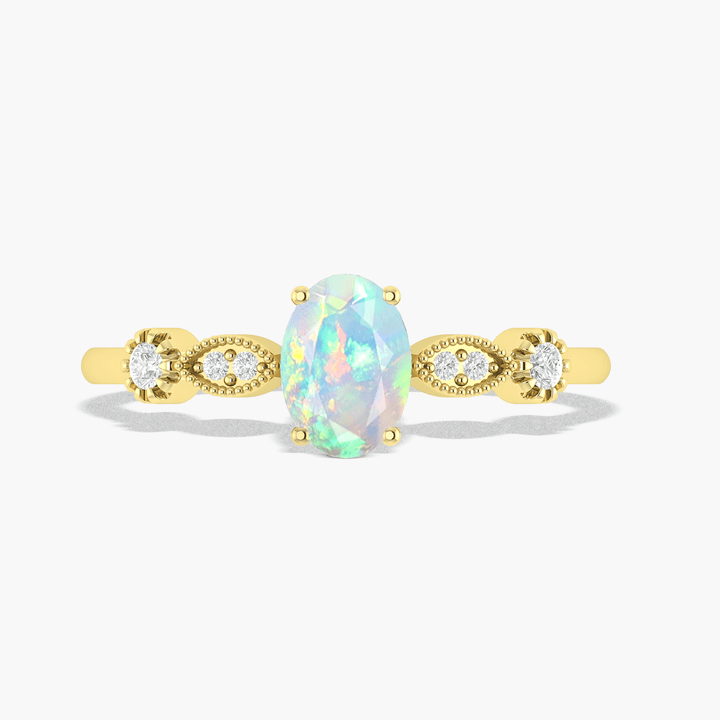 Oval Shape Natural White Opal & Zircon Solitaire with Accents Ring
