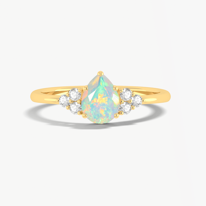 Natural White Opal Pear Shape & White Zircon Solitaire with Accents Ring