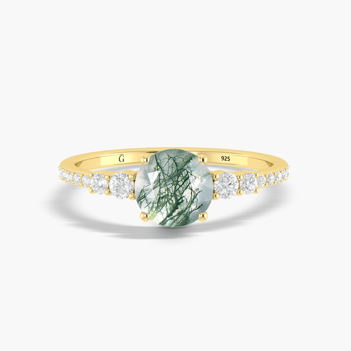 Half Eternity Ring with Natural Moonstone and White Zircon