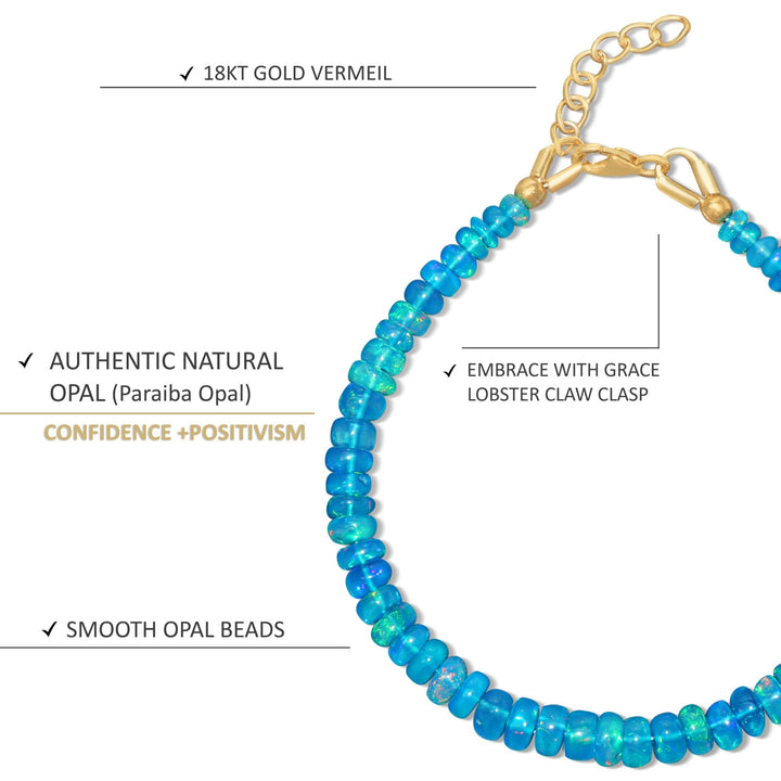 Natural Paraiba fire opal beaded bracelet for her