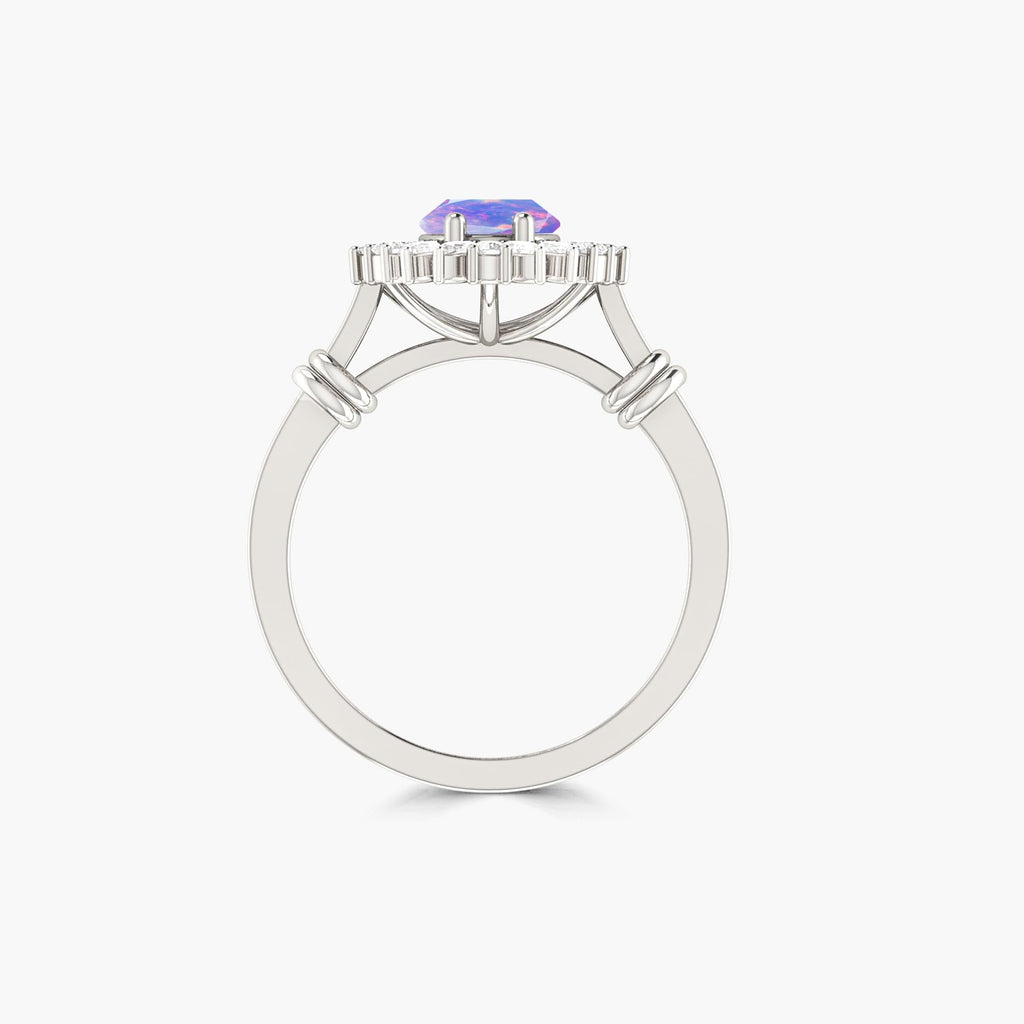 This Natural Lavender fire Ethiopian opal Wedding ring is the perfect statement piece for any occasion. With its minimalist design and stunning 6 x 8 MM opal, it makes the ideal gift for your loved one, especially during the holiday season. Let this elegant and unique ring be a symbol of your love and commitment.