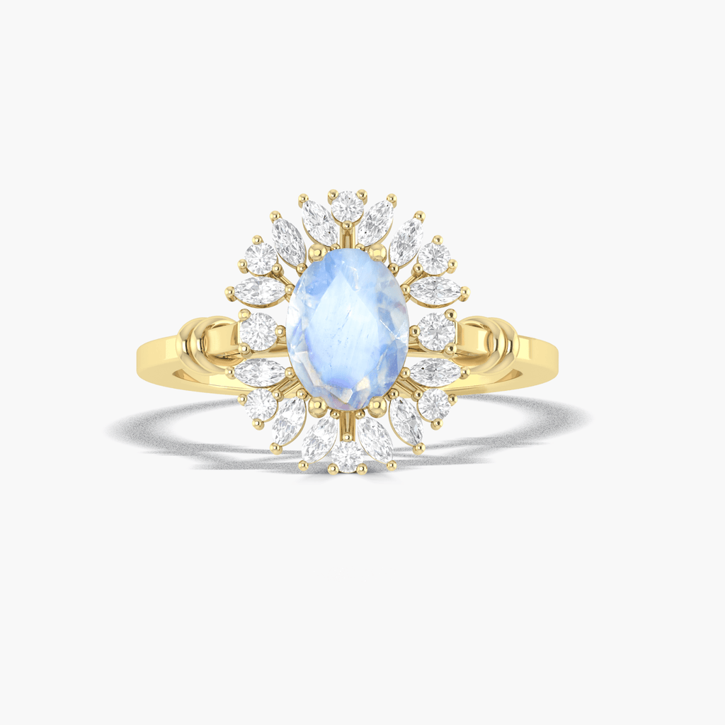 This stunning White Rainbow Moonstone ring is the perfect statement piece for your wedding or every day wear. Crafted with 18k gold vermeil or 925 sterling silver, this ring offers a touch of elegance and charm. Its purposeful design makes it a great promise ring for your loved one.