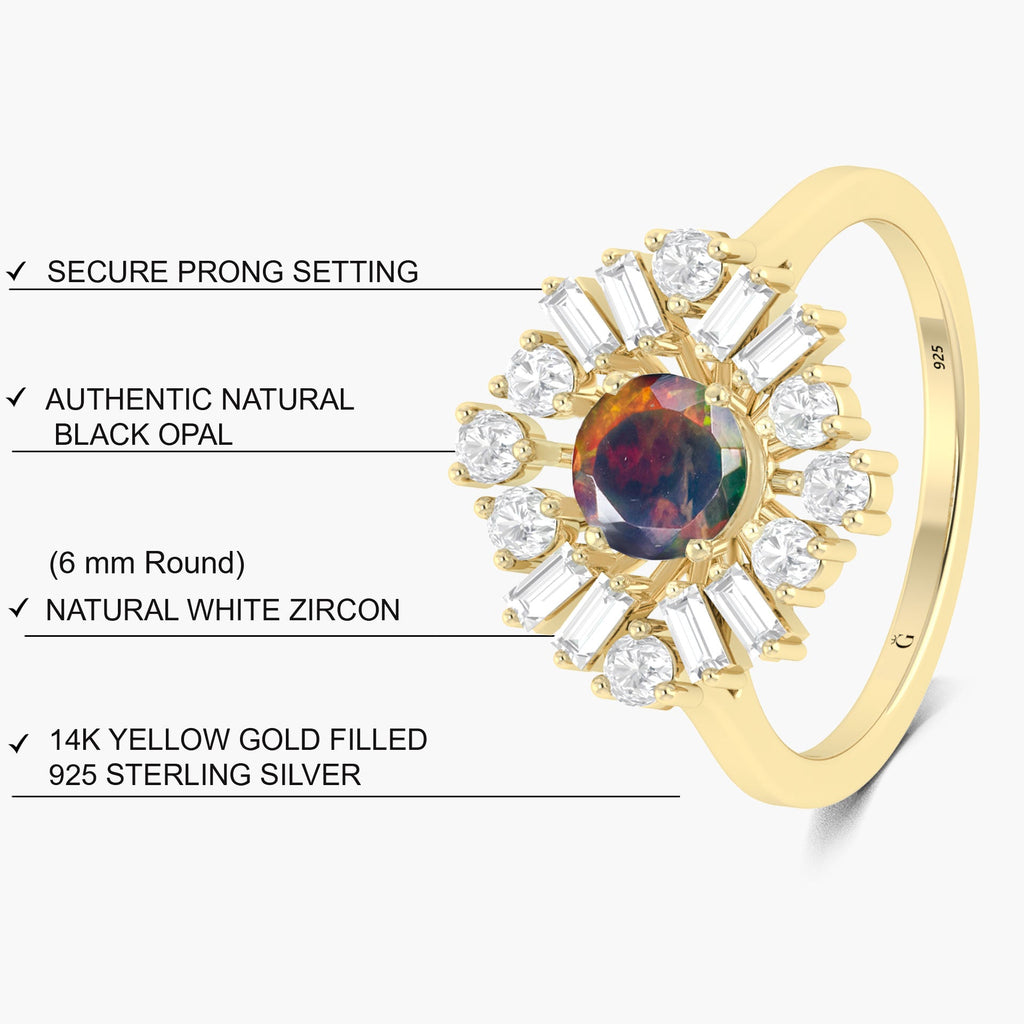 Introducing our Round Black Rainbow fire Ethiopian opal wedding ring - the perfect combination of striking elegance and minimalistic style. This ring doubles as an engagement, purpose, or promise ring, and makes a thoughtful and unique gift for that special someone. Adorned with a vintage fire opal, it adds a touch of timeless beauty to any outfit.