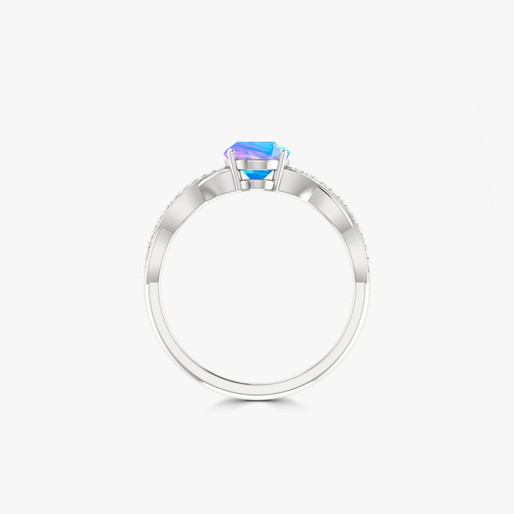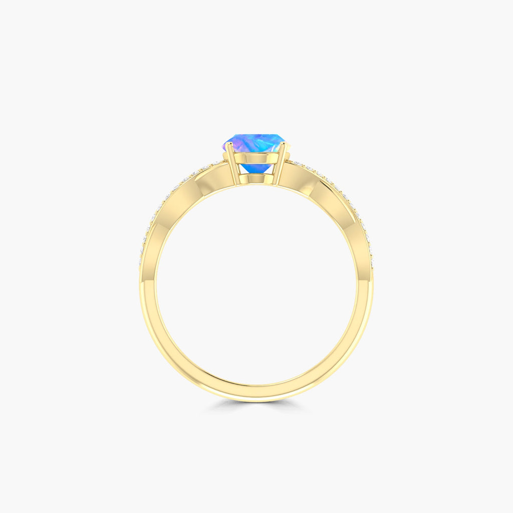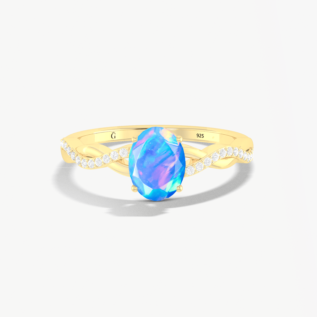 This handcrafted ring features a natural blue fire dainty oval Ethiopian opal, making it a unique and stunning piece. With its natural colors and fire, this ring is perfect for adding a touch of elegance and sophistication to any outfit. Expertly crafted, this ring is sure to make a statement.