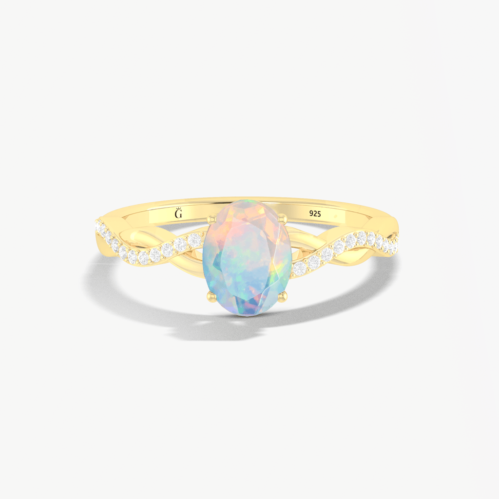 Crafted with a stunning White Ethiopian fire opal, this wedding gold ring exudes elegance and luxury. The perfect accessory for any special occasion, this ring is sure to make a statement. Invest in this timeless piece and showcase its beauty on your finger.