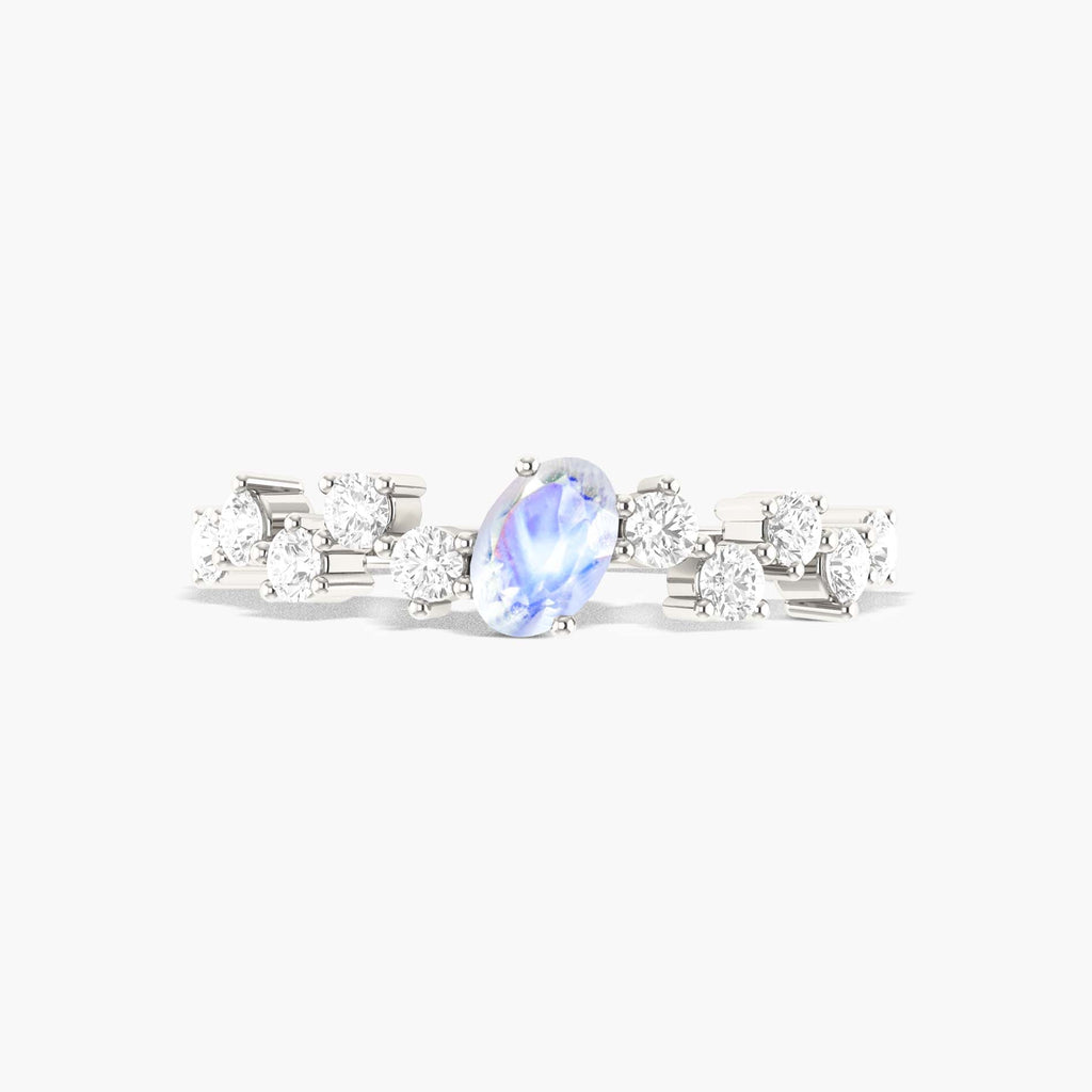 This Handcrafted White rainbow moonstone ring features a delicately set 4 x 6 MM moonstone with a small round zircon accent. Available in 18k Gold vermeil or 925 Sterling silver, this dainty ring is a unique and beautiful addition to any jewelry collection. Enhance your style with the mystifying beauty of rainbow moonstone.