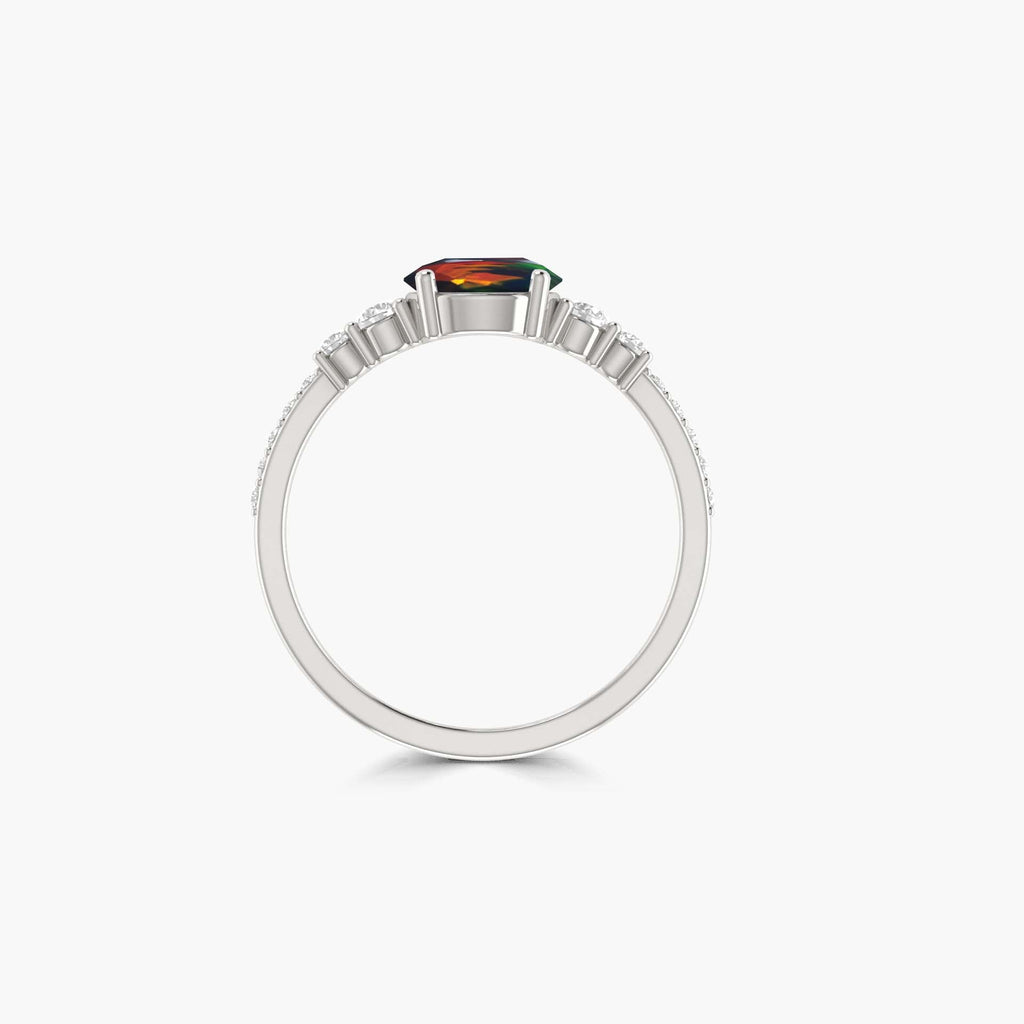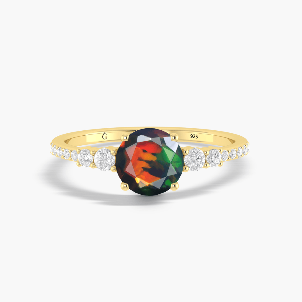Experience the thrill of an adventure with our Dainty round Black fire Ethiopian opal wedding ring! Embrace risk and take a bold step with this unique and stunning piece. The fiery opal stone will add a touch of mystery and allure to your wedding look. Dare to stand out and make a statement with this one-of-a-kind ring!
