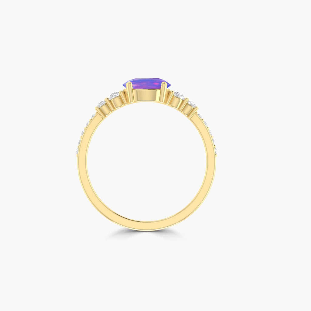 Unleash your wild side with the Dainty round Lavender fire Ethiopian opal wedding ring! Dare to stand out from the crowd with this unique and stunning piece. The delicate round opal is set on a bold and daring design, perfect for the adventurous bride. Make a statement and ignite your inner fire with this one-of-a-kind wedding ring.