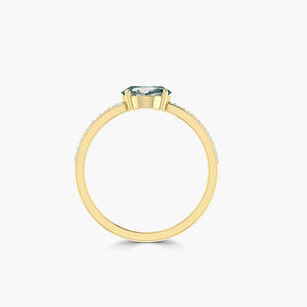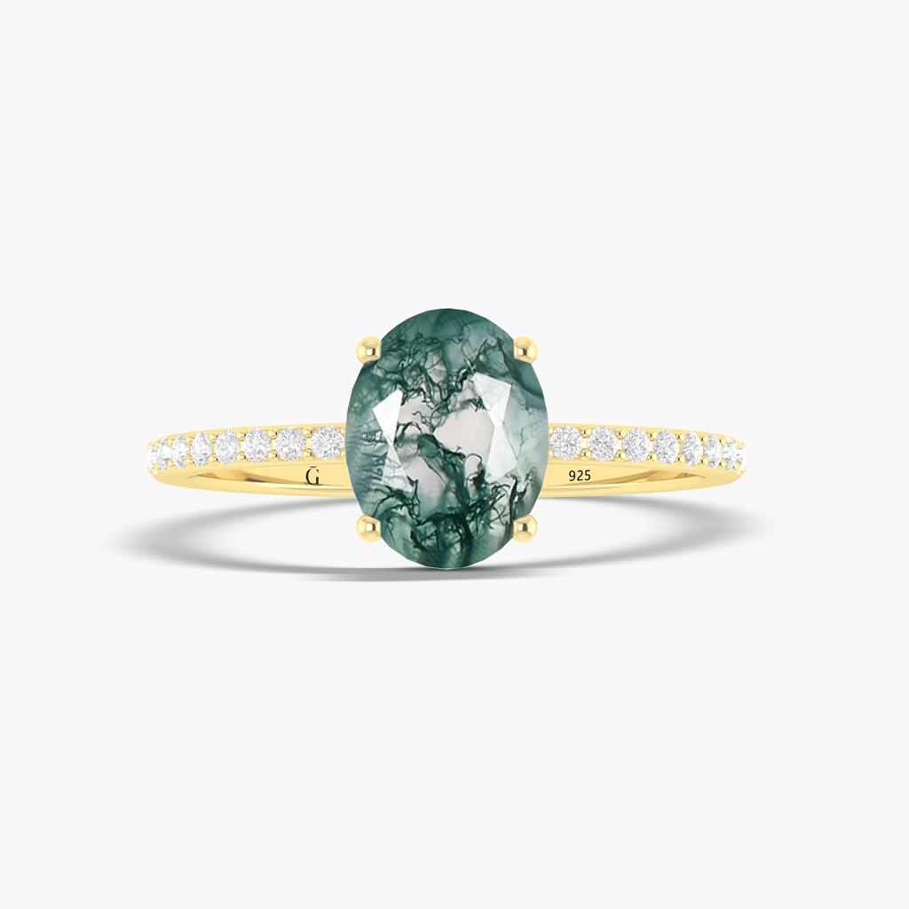 make a statement with our Oval Moss Agate ring in gold vermeil or silver. The bold, oval-shaped stone adds an adventurous touch to any outfit. Dare to stand out with this unique piece. Available in gold vermeil or silver.