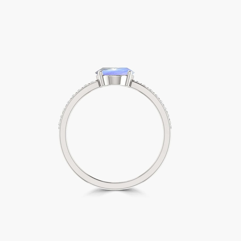 Oval Rainbow Moonstone Statement Engagement Ring is expertly crafted with a magnificent oval-shaped moonstone to captivate your gaze. With its iridescent colors and exceptional quality, this ring makes the perfect symbol of eternal love and commitment. Bring a touch of magic to any occasion with this enchanting piece.