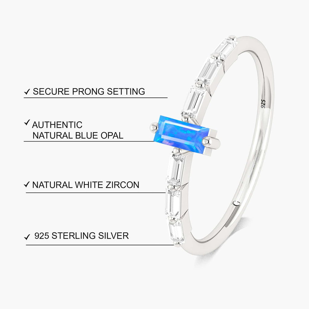 Blue OpalNatural Blue Opal Designer Ring, crafted to blend modern minimalism with meaningful symbolism. At its center is a genuine 2.5×5 mm baguette-cut Blue opal, showcasing a mesmerizing 0.25-carat play-of-color that shimmers with every movement, an enchanting choice for those seeking a unique engagement or promise ring. Expertly handcrafted in 925 sterling silver and finished with yellow gold plating, this ring combines durability with luxurious shine. Its anti-tarnish finish ensures lasting brilliance, while the hypoallergenic materials make it perfect for sensitive skin. Whether worn solo or stacked with other rings, its sleek silhouette delivers versatile style for any occasion.