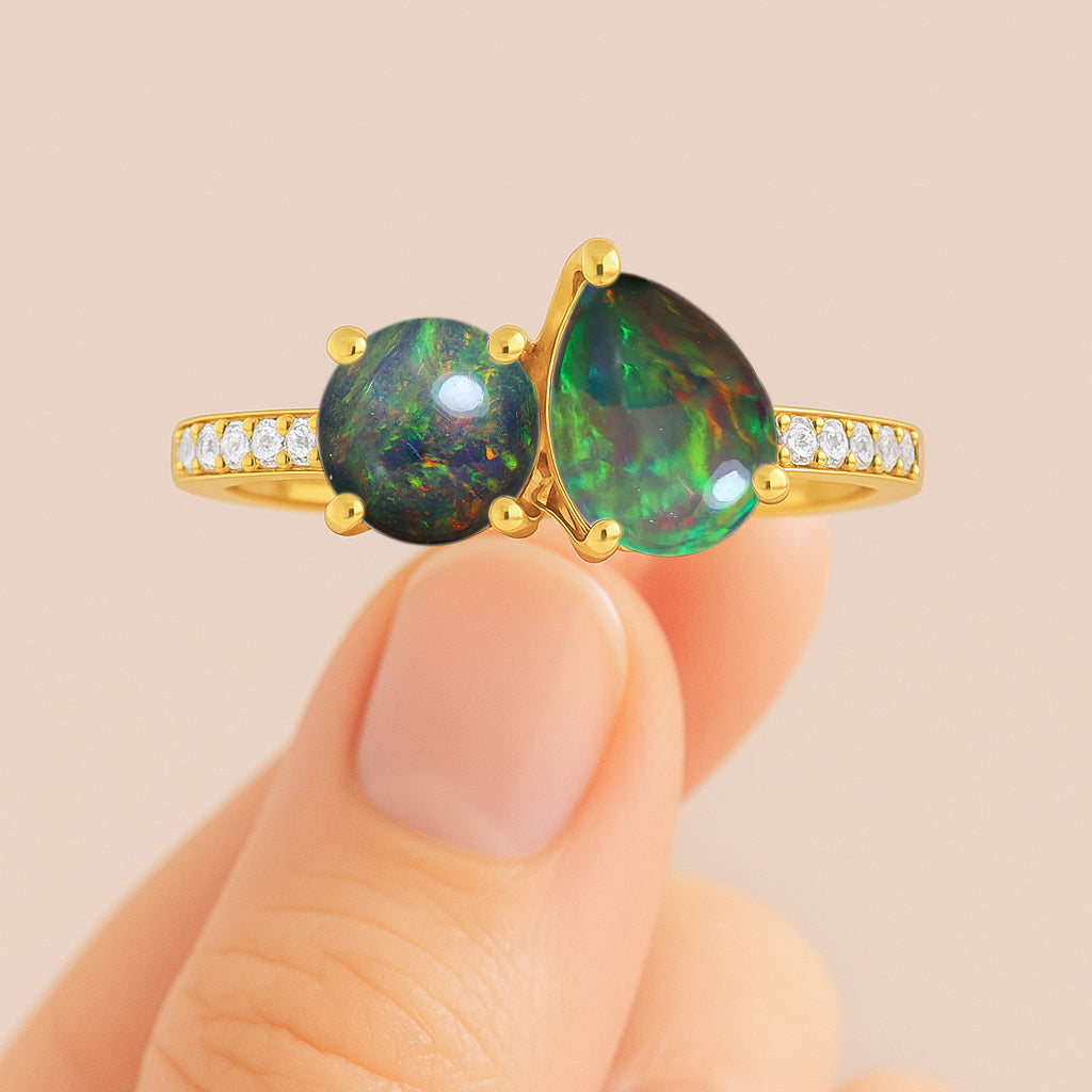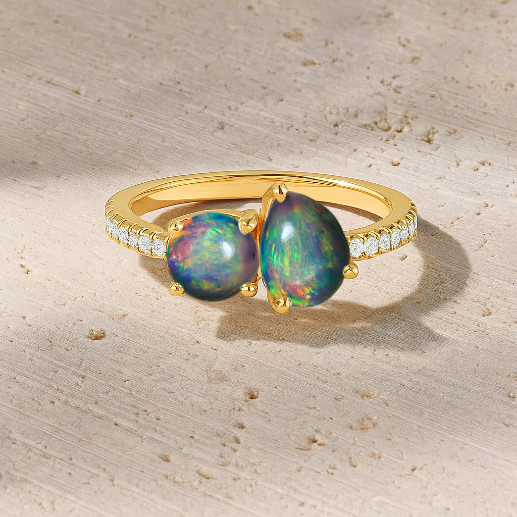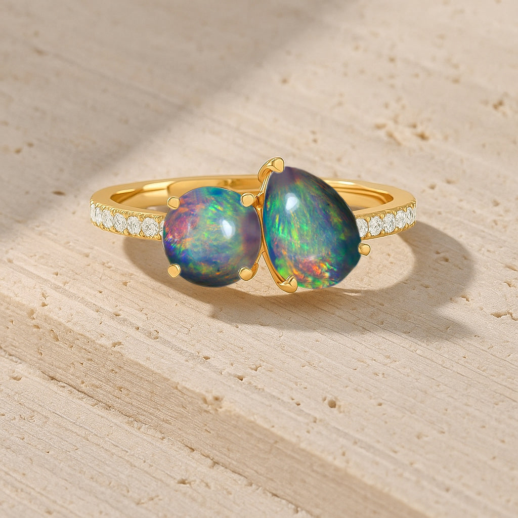 Black OpalDiscover the perfect blend of elegance and sophistication with this Two Stone Ring, crafted in premium 925 Sterling Silver. Featuring a luminous Black Opal pear shaped stone (8x6 mm) paired with a smooth round stone (6 mm), totaling 1.70 carats, this ring exudes timeless charm. Designed for comfort and style, it measures size 9.64 and weighs approximately 3.42 gm. Ideal for special occasions or daily wear, its versatile design makes it a captivating addition to any jewelry collection. Elevate your look with this exquisite, gift worthy piece that radiates refined luxury.