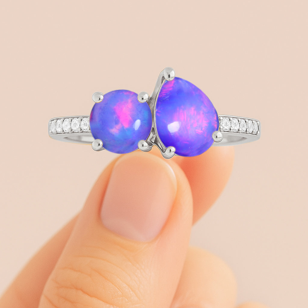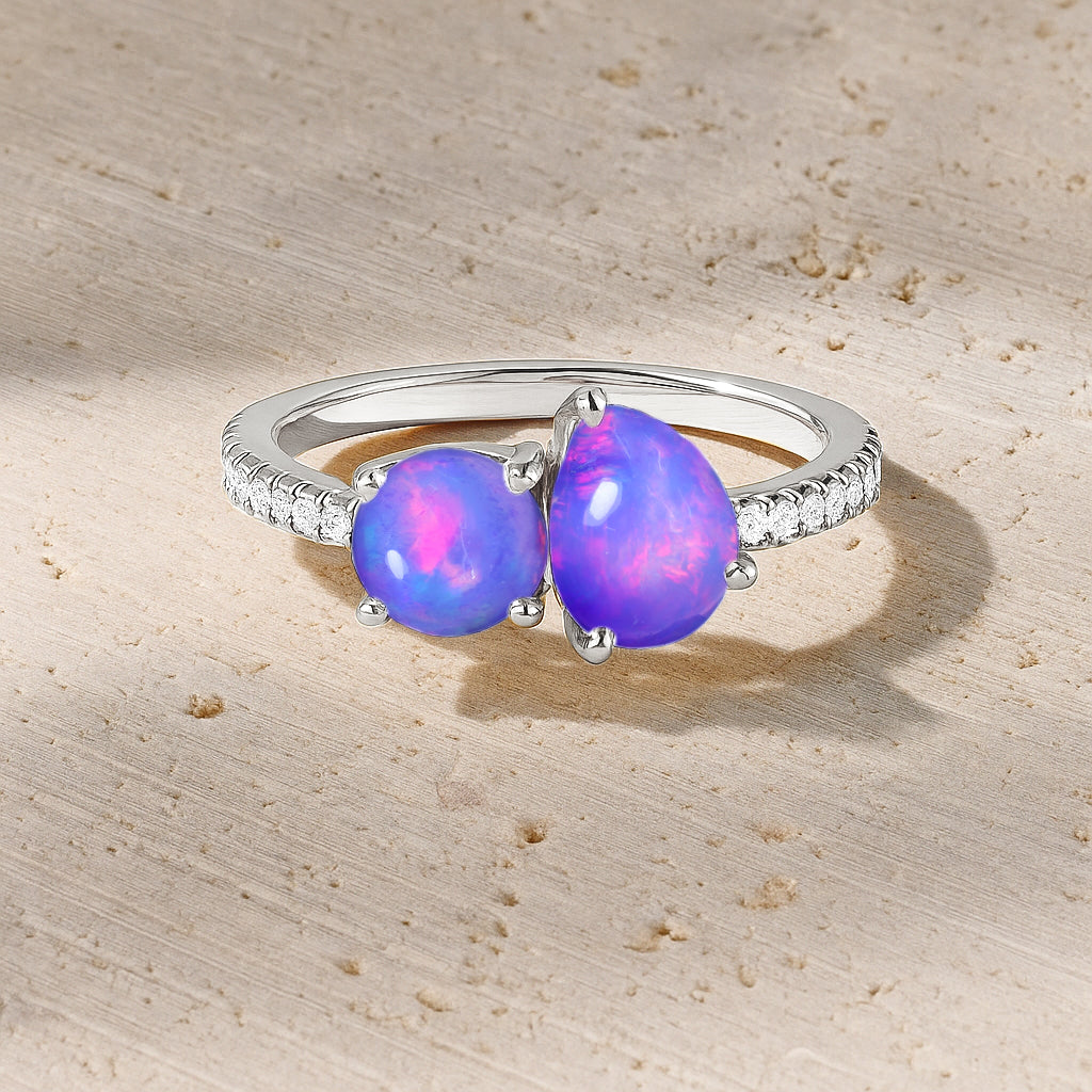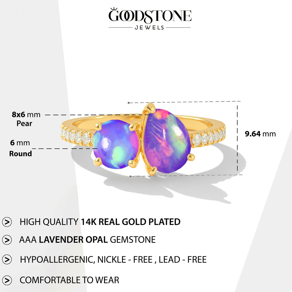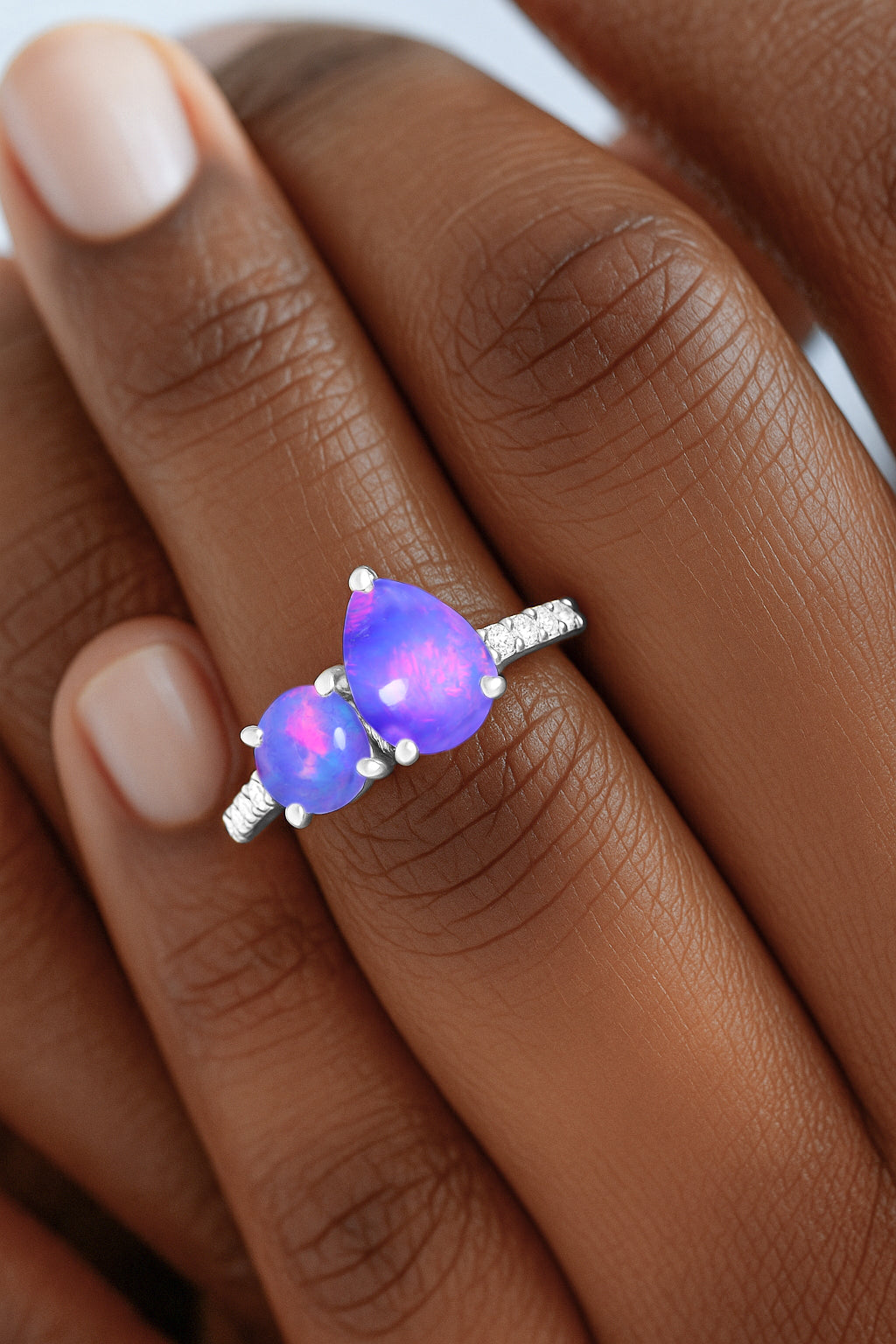 Lavender OpalDiscover the perfect blend of elegance and sophistication with this Two Stone Ring, crafted in premium 925 Sterling Silver. Featuring a luminous Lavender Opal pear shaped stone (8x6 mm) paired with a smooth round stone (6 mm), totaling 1.70 carats, this ring exudes timeless charm. Designed for comfort and style, it measures size 9.64 and weighs approximately 3.42 gm. Ideal for special occasions or daily wear, its versatile design makes it a captivating addition to any jewelry collection. Elevate your look with this exquisite, gift worthy piece that radiates refined luxury.