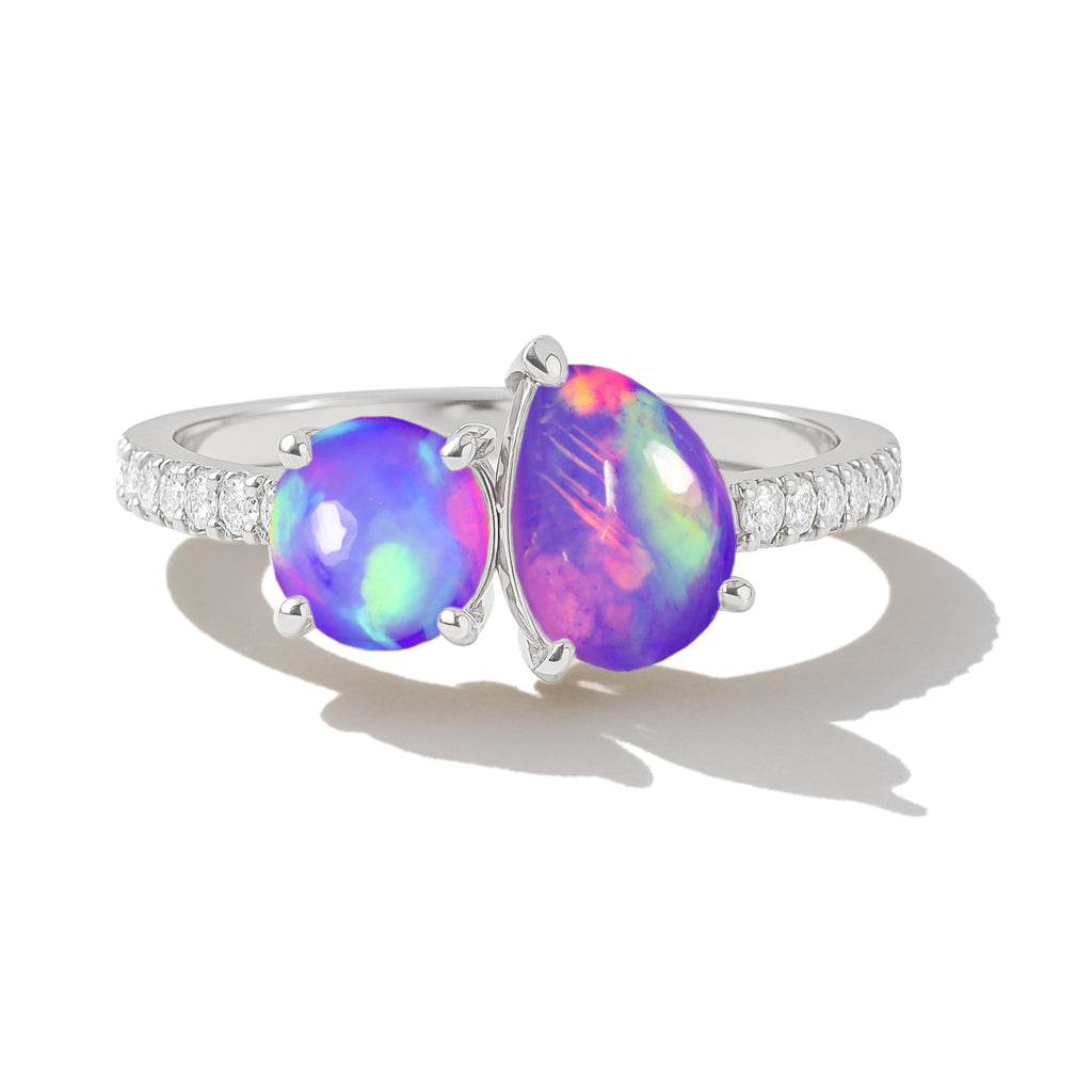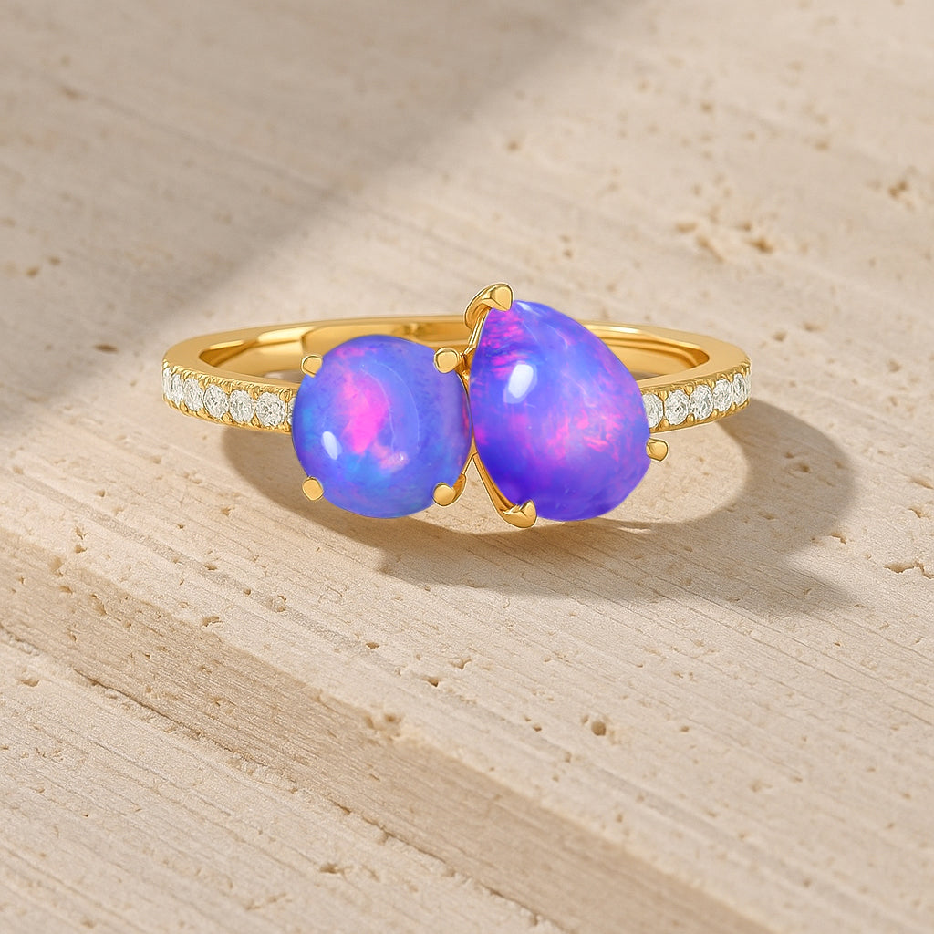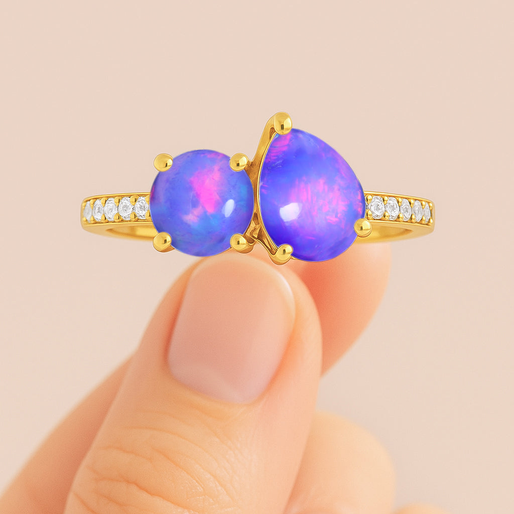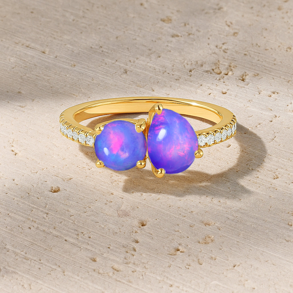 Lavender OpalDiscover the perfect blend of elegance and sophistication with this Two Stone Ring, crafted in premium 925 Sterling Silver. Featuring a luminous Lavender Opal pear shaped stone (8x6 mm) paired with a smooth round stone (6 mm), totaling 1.70 carats, this ring exudes timeless charm. Designed for comfort and style, it measures size 9.64 and weighs approximately 3.42 gm. Ideal for special occasions or daily wear, its versatile design makes it a captivating addition to any jewelry collection. Elevate your look with this exquisite, gift worthy piece that radiates refined luxury.