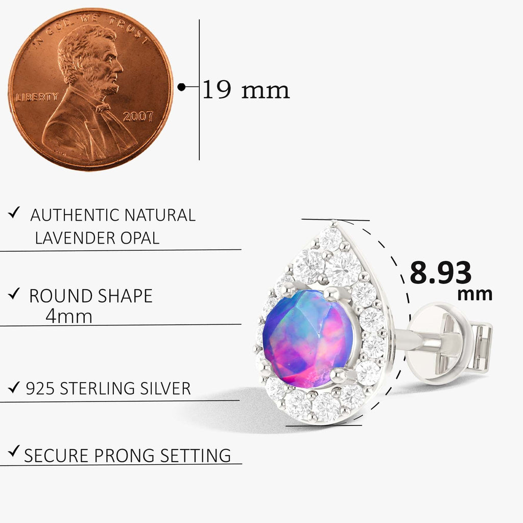 Lavender OpalGOODSTONE JEWELS 925 Sterling Silver Stud Earrings, crafted to perfection for women who adore genuine beauty and refined luxury. These stunning earrings feature a harmonious natural opal 4MM round stone carefully set to maximize brilliance and color contrast. Designed for daily elegance or special occasions. The durable 925 sterling silver base ensures long-lasting quality, while the push-back closure provides a secure and comfortable fit for all-day wear. Whether you're celebrating a birthday, engagement, wedding, anniversary, or simply gifting from the heart, these birthstone-inspired earrings are a meaningful expression of love and sophistication.
