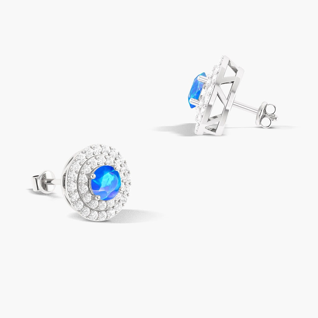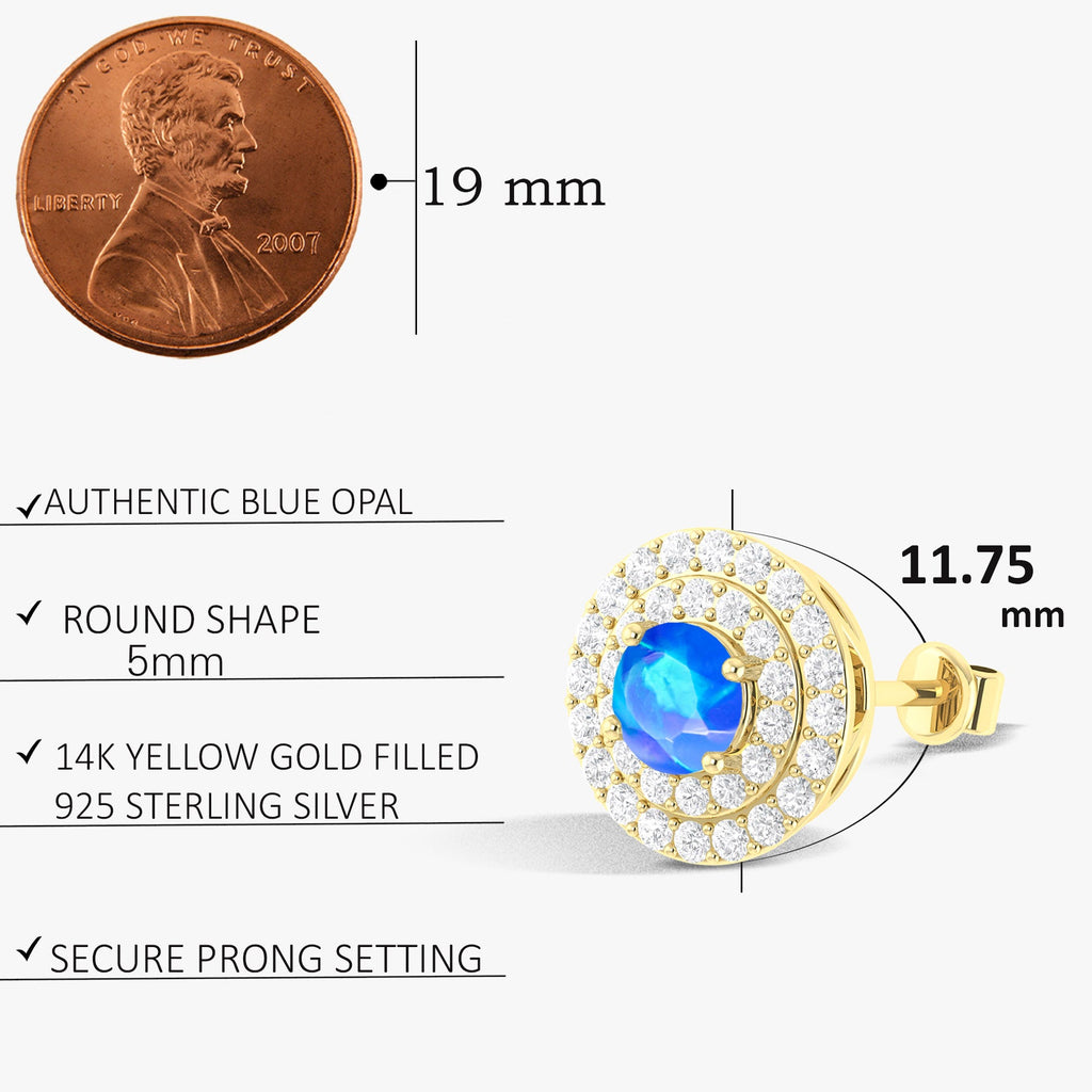 Blue Opal925 Sterling Silver Natural Opal Halo Stud Earrings Birthstone Jewelry for Women. Discover timeless beauty and luxury with GOODSTONE JEWELS’ handcrafted 925 sterling silver halo stud earrings. Featuring natural opal gemstones in a 5mm round cut at the center creating a radiant halo effect. These birthstone earrings for women are designed to elevate any outfit with their vibrant sparkle and meaningful elegance. Expertly crafted in sterling silver, each earring measures 11.75x11.75mm and weighs a comfortable 3.45 grams, offering both durability and a premium feel. The 1-carat total face makes these earrings a standout choice whether you're treating yourself or gifting someone special.