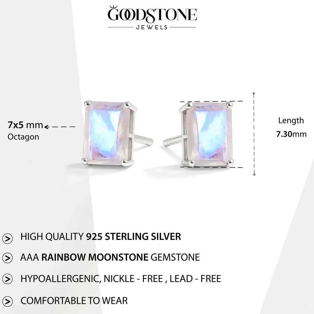 MoonstoneExperience timeless elegance with these Moonstone Octagon Stud Earrings, crafted in premium 925 sterling silver. Featuring a vibrant 7x5 mm moonstone cut in a striking hexagon face, each stud offers a refined 0.75-carat brilliance. Lightweight at approximately 0.70 g, they provide comfortable all-day wear. Perfect for adding a touch of luxury to any look, these earrings blend classic beauty with modern sophistication. Ideal for gifting or personal style.