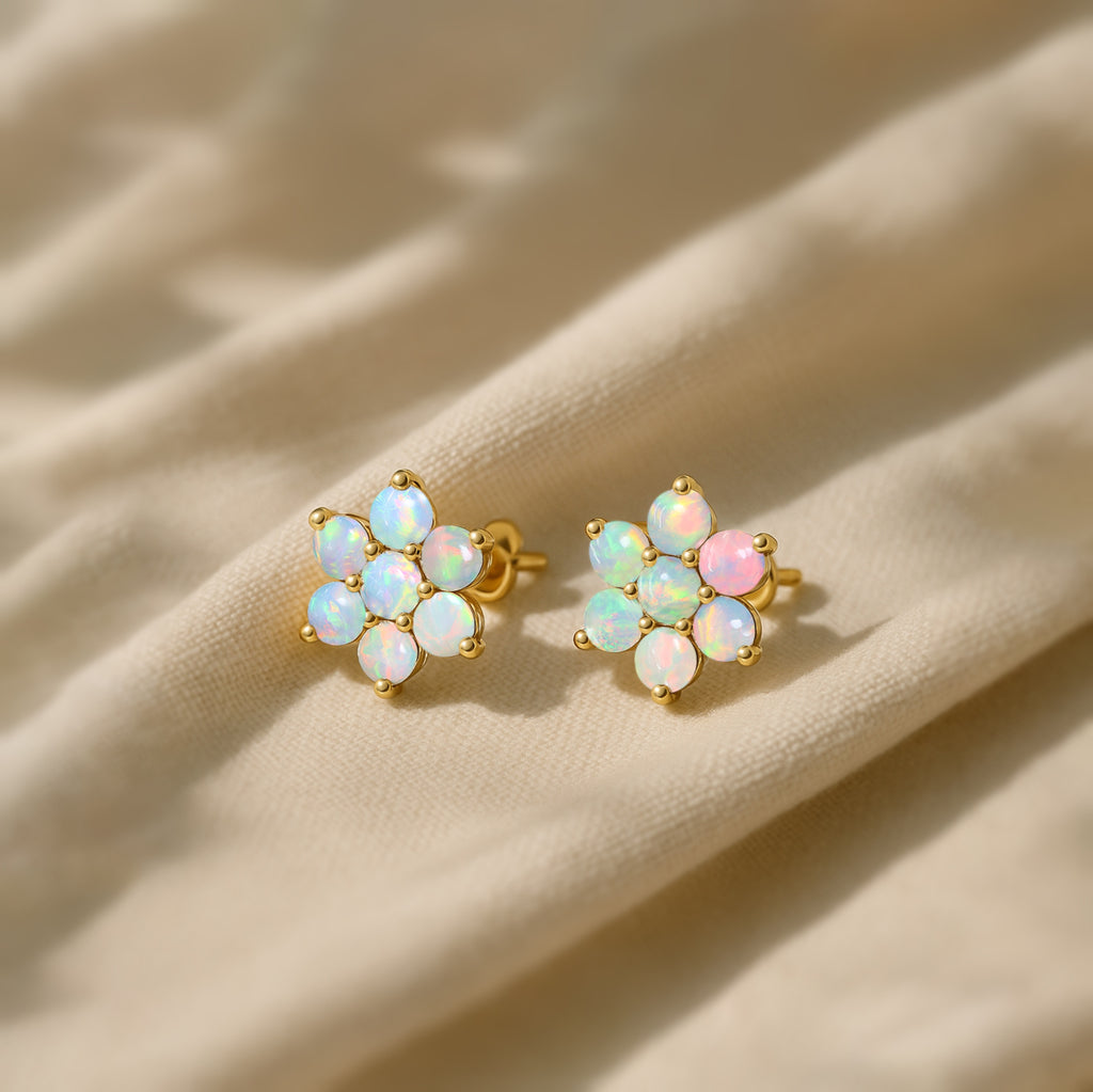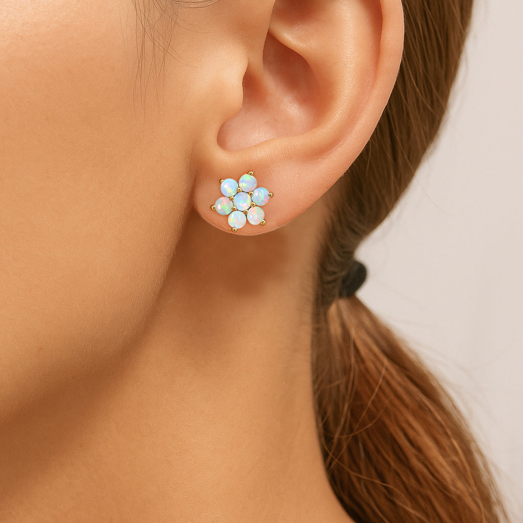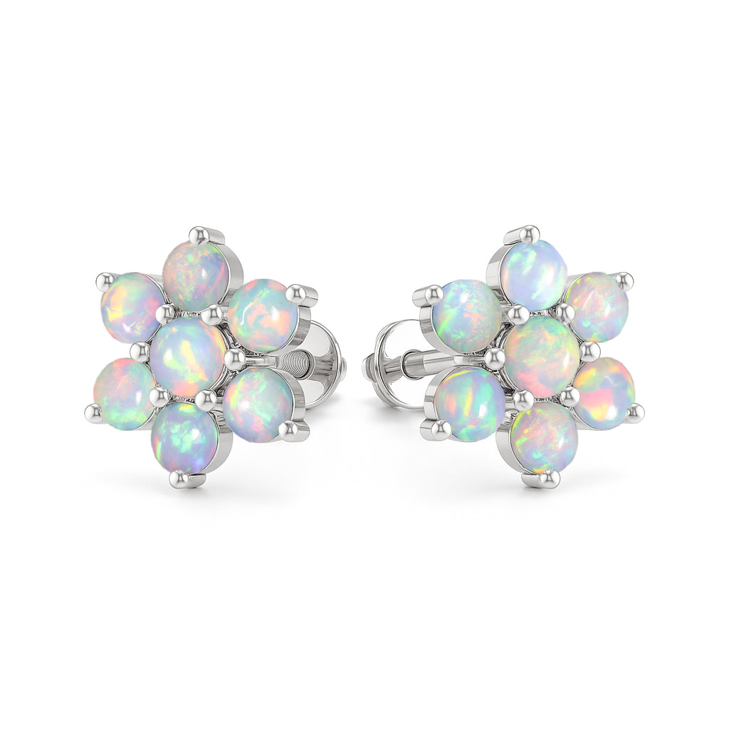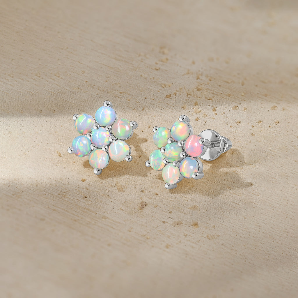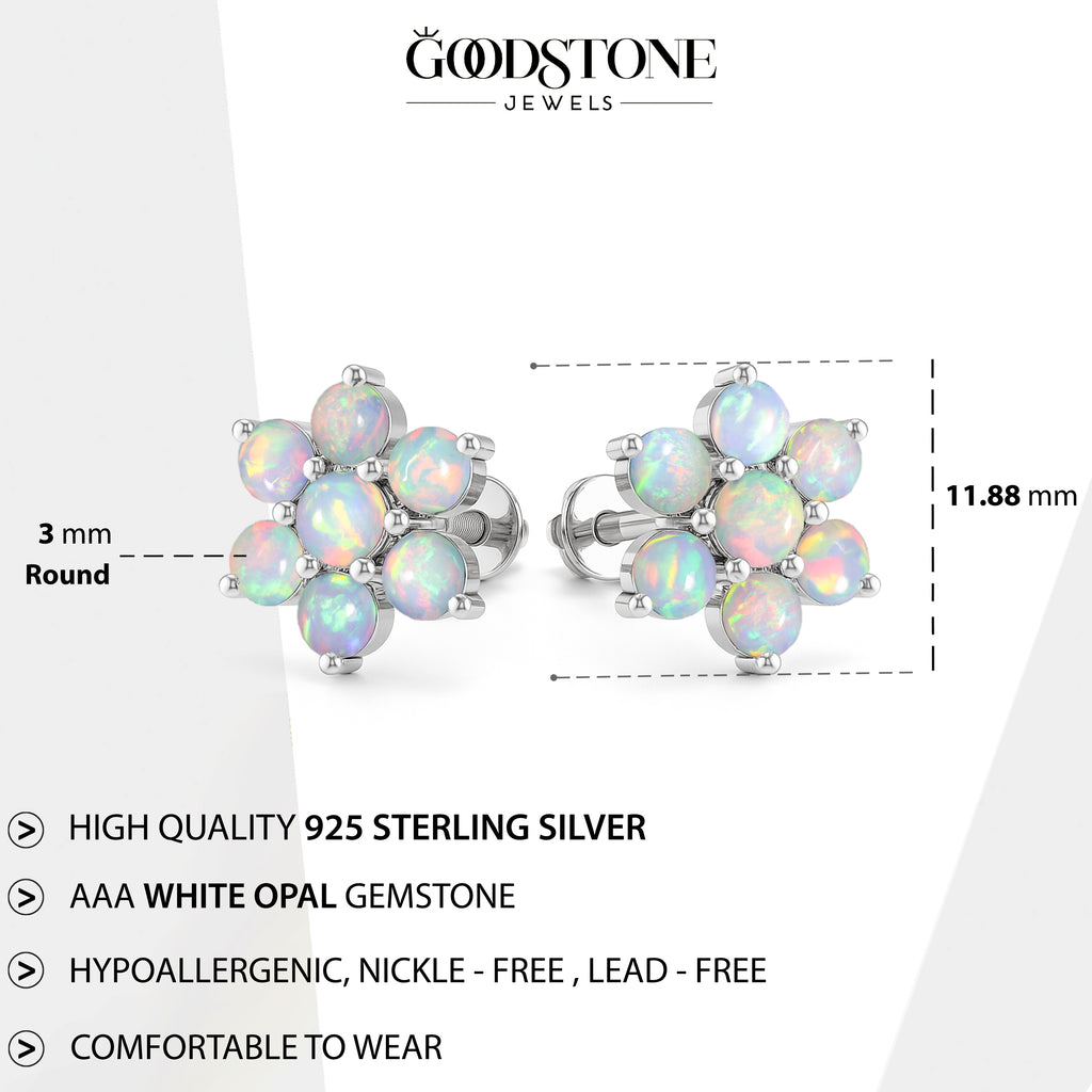 White OpalElevate your everyday elegance with these White Opal Round Stone Stud Earrings, beautifully crafted in 925 Sterling Silver. Featuring 14 smooth 3 mm round opal stones totaling 2.80 carats, each earring reflects a soft iridescent glow that enhances any look from casual chic to refined evening wear. With a size of 11.88 x 10.46 mm and a solid 3.60 gm build, these studs offer both durability and luxury. The high polish silver setting enhances the natural fire of the opal, making this pair a perfect gift for birthdays, anniversaries, or opal lovers. A timeless, luminous addition to your fine jewelry collection.