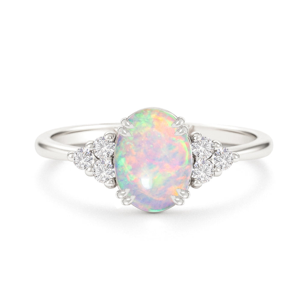 White OpalElevate your jewelry collection with this stunning White Opal Oval Solitaire Ring, expertly crafted in premium 925 Sterling Silver. The centerpiece features a smooth 8x6 mm oval white opal, glowing with its signature play of color and offering a refined 0.9 carat brilliance. Its elegant, minimalist setting enhances the stone’s natural beauty while ensuring durability and comfort for daily wear. Weighing approximately 3.10 gm, this ring is both lightweight and luxurious. Perfect for special occasions, thoughtful gifting, or adding a touch of sophistication to your everyday style, this timeless piece brings modern elegance and radiant charm to any look.