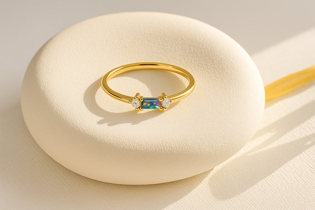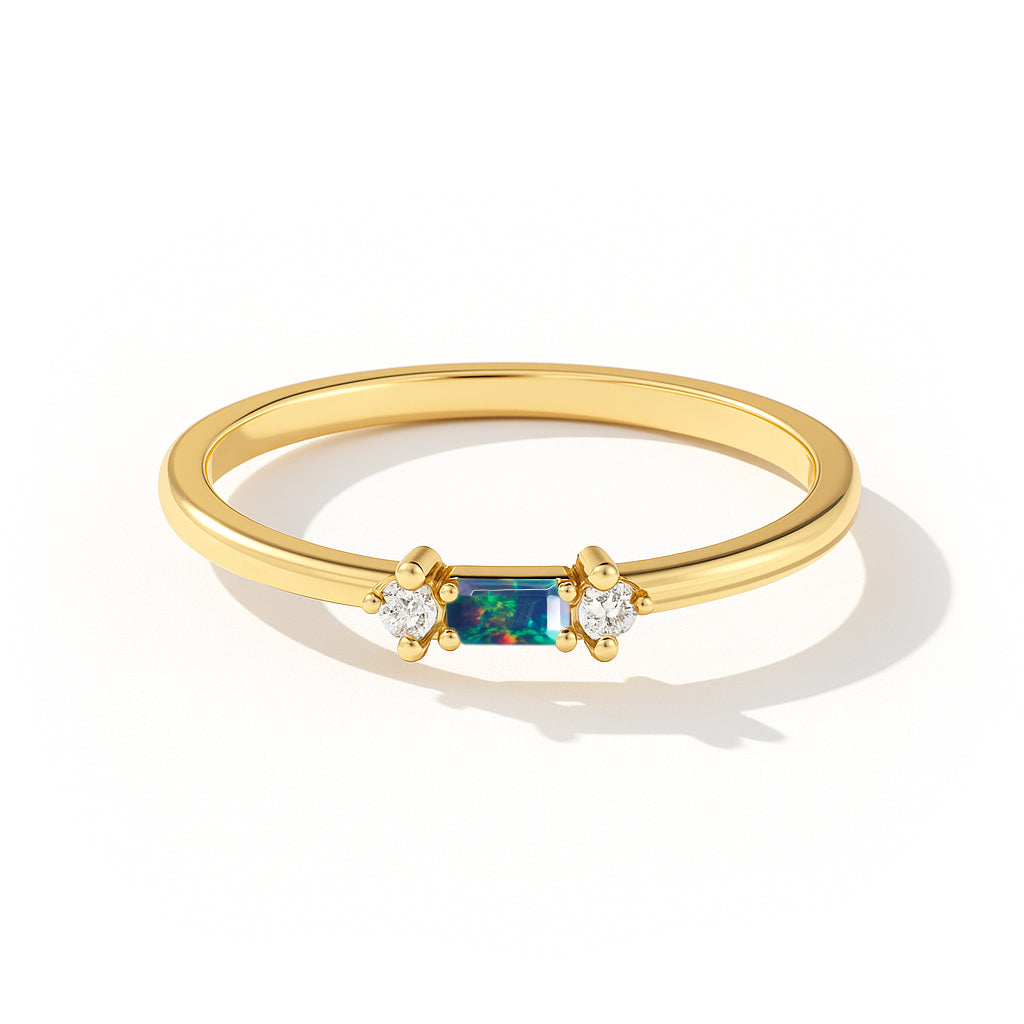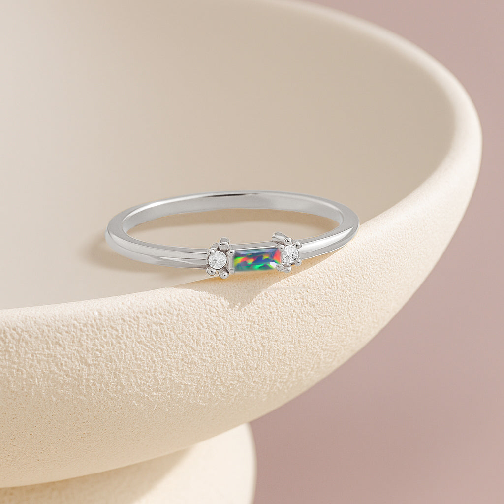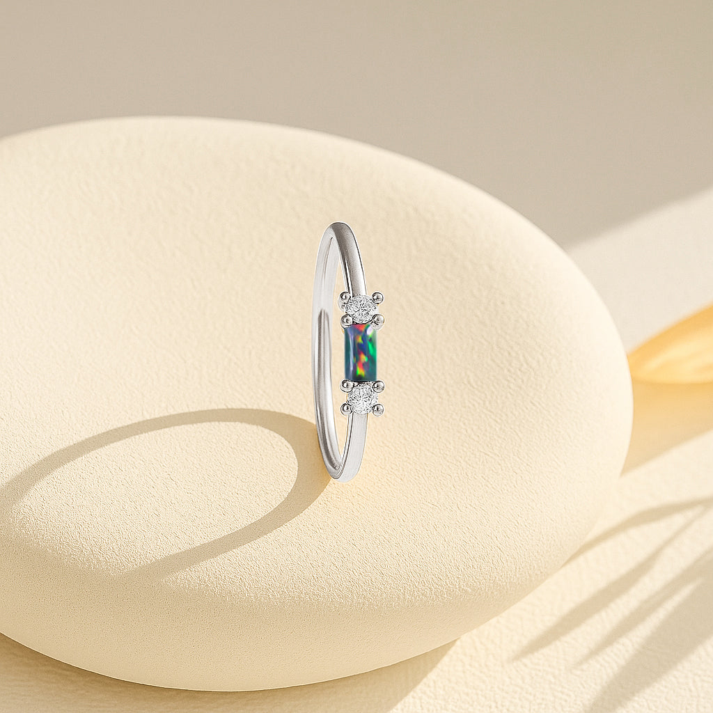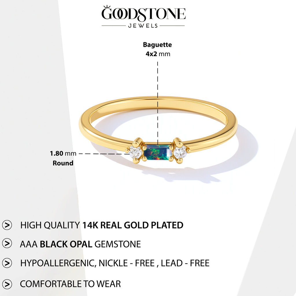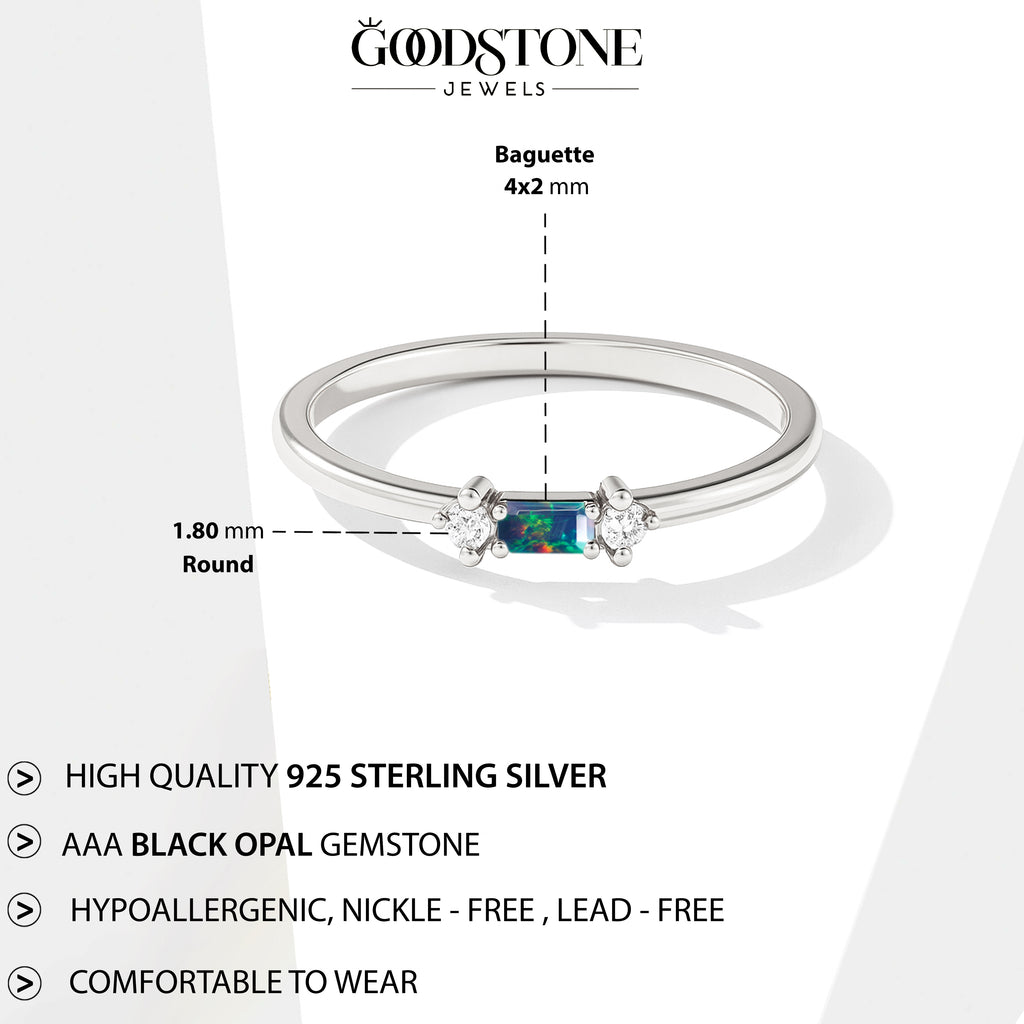 Black OpalExperience timeless elegance with this Black Opal Baguette Solitaire Ring, beautifully crafted in 925 sterling silver. The design features a striking 4x2 mm baguette cut natural black opal, showcasing a vivid red hue and a refined minimalist silhouette. With a gemstone weight of 0.20 carat, this ring offers subtle brilliance perfect for daily wear or special occasions. Its sleek silver band complements the stone’s clean lines, making it a sophisticated addition to any jewelry collection.