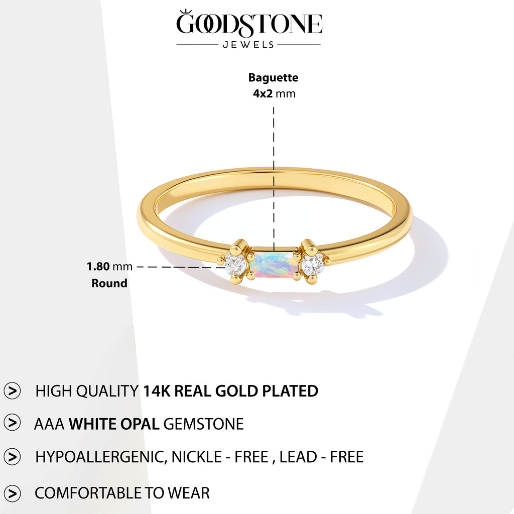 White OpalExperience timeless elegance with this White Opal Baguette Solitaire Ring, beautifully crafted in 925 sterling silver. The design features a striking 4x2 mm baguette cut natural white opal, showcasing a vivid red hue and a refined minimalist silhouette. With a gemstone weight of 0.20 carat, this ring offers subtle brilliance perfect for daily wear or special occasions. Its sleek silver band complements the stone’s clean lines, making it a sophisticated addition to any jewelry collection.