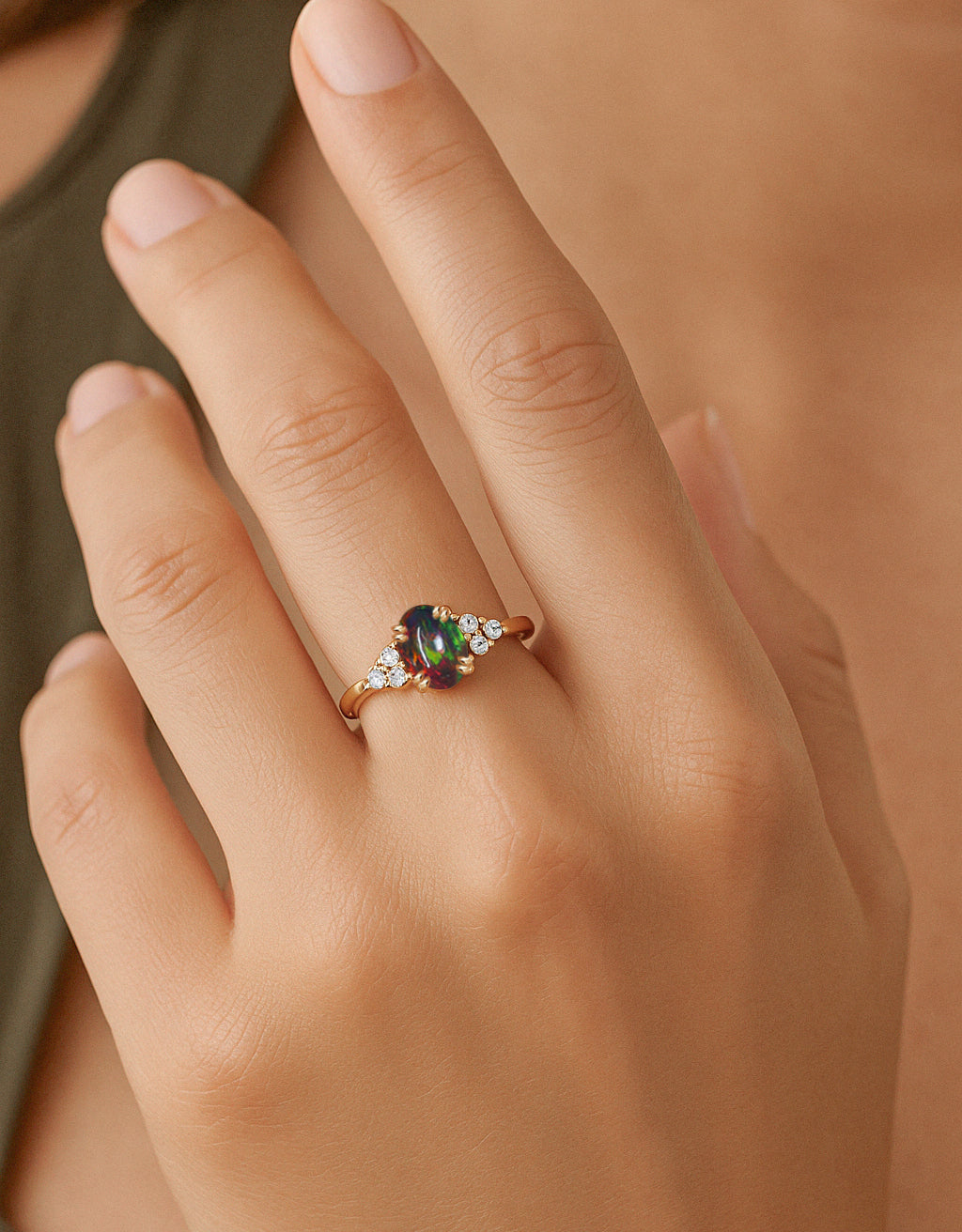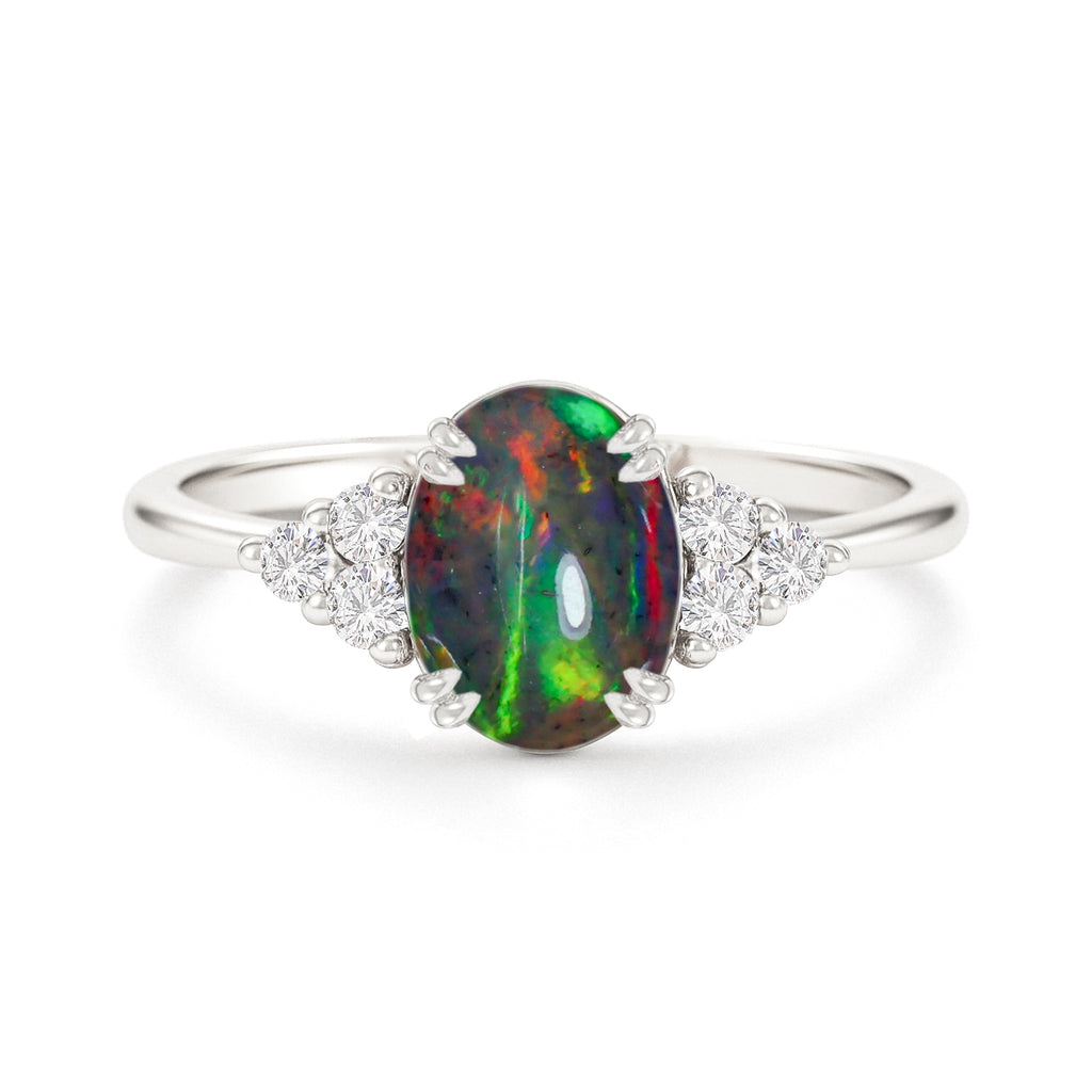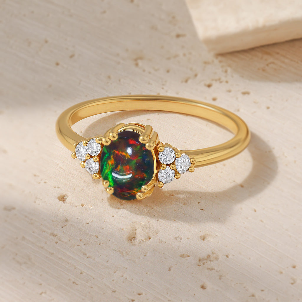 Black OpalElevate your jewelry collection with this stunning Black Opal Oval Solitaire Ring, expertly crafted in premium 925 Sterling Silver. The centerpiece features a smooth 8x6 mm oval black opal, glowing with its signature play of color and offering a refined 0.9 carat brilliance. Its elegant, minimalist setting enhances the stone’s natural beauty while ensuring durability and comfort for daily wear. Weighing approximately 3.10 gm, this ring is both lightweight and luxurious. Perfect for special occasions, thoughtful gifting, or adding a touch of sophistication to your everyday style, this timeless piece brings modern elegance and radiant charm to any look.
