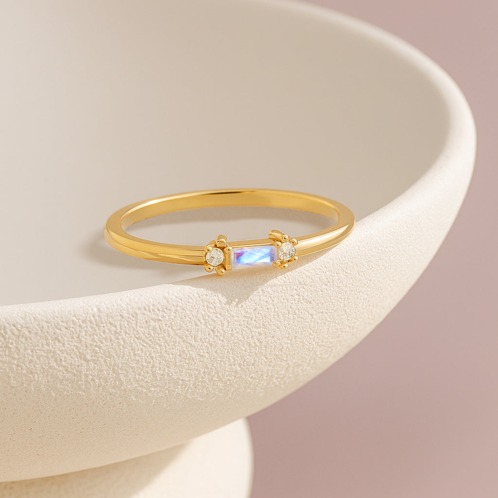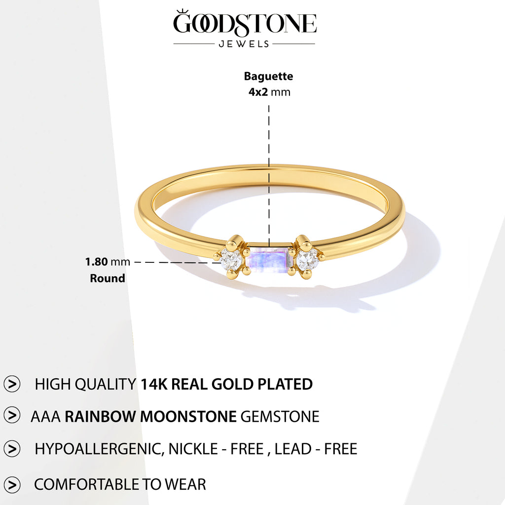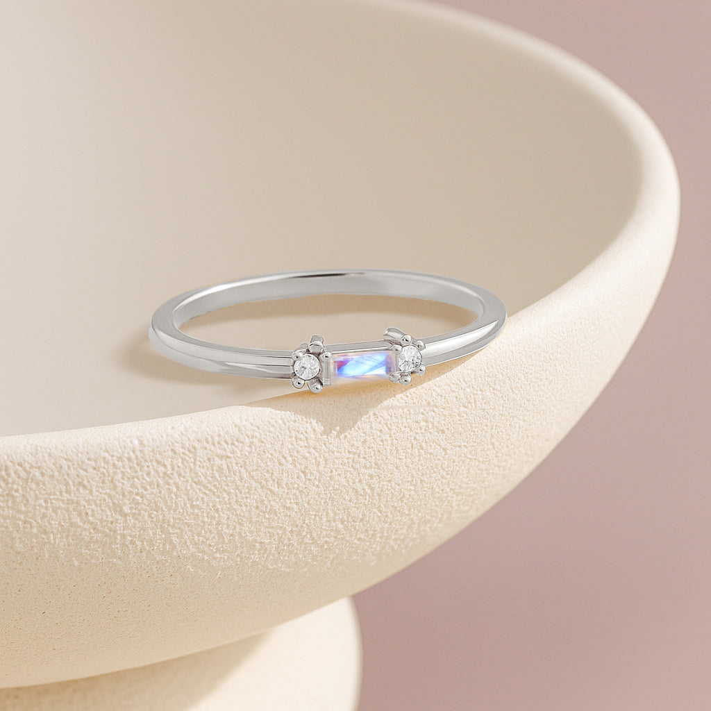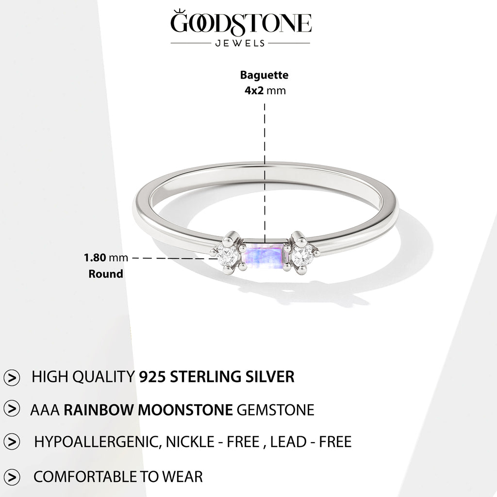 MoonstoneExperience timeless elegance with this Moonstone Baguette Solitaire Ring, beautifully crafted in 925 sterling silver. The design features a striking 4x2 mm baguette cut natural moonstone, showcasing a vivid red hue and a refined minimalist silhouette. With a gemstone weight of 0.30 carat, this ring offers subtle brilliance perfect for daily wear or special occasions. Its sleek silver band complements the stone’s clean lines, making it a sophisticated addition to any jewelry collection.