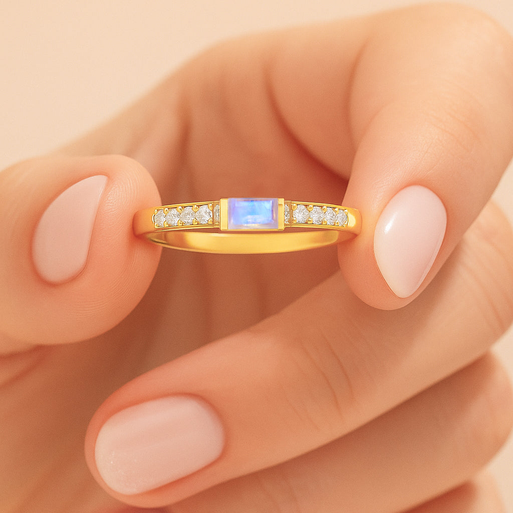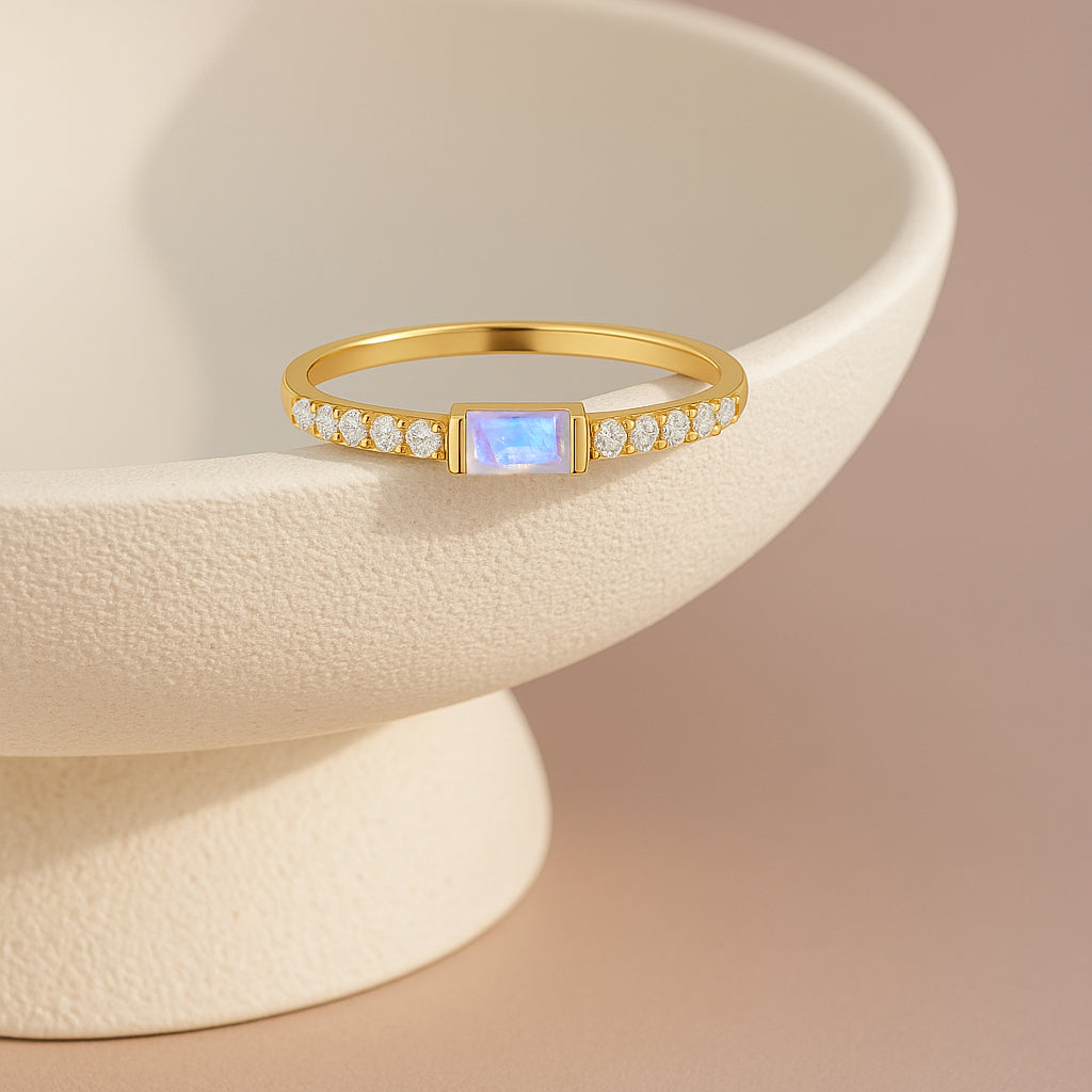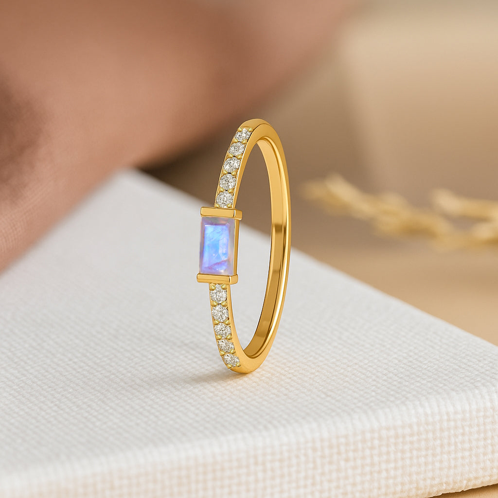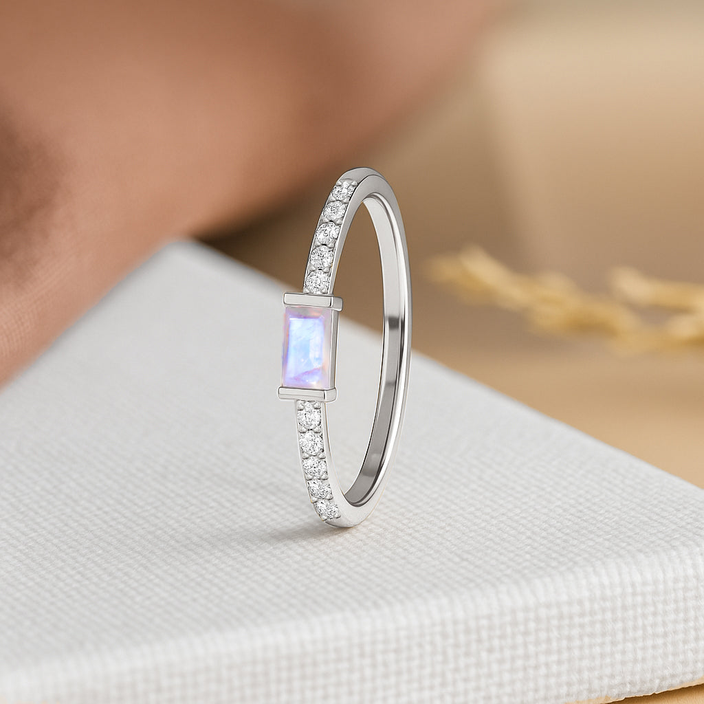 MoonstoneExperience timeless elegance with this Moonstone Baguette Solitaire Ring, beautifully crafted in 925 sterling silver. The design features a striking 4x2 mm baguette cut natural moonstone, showcasing a vivid red hue and a refined minimalist silhouette. With a gemstone weight of 0.30 carat, this ring offers subtle brilliance perfect for daily wear or special occasions. Its sleek silver band complements the stone’s clean lines, making it a sophisticated addition to any jewelry collection.