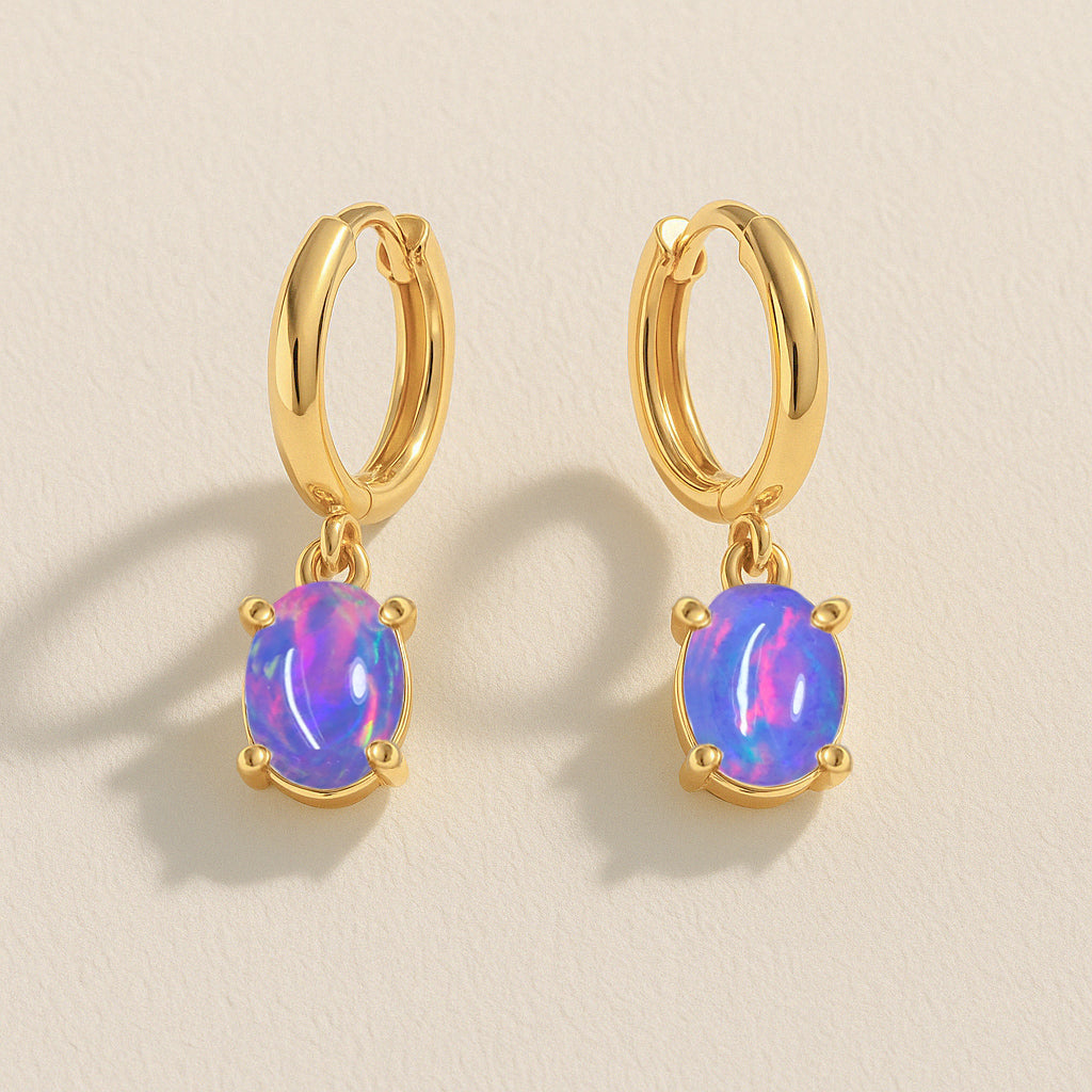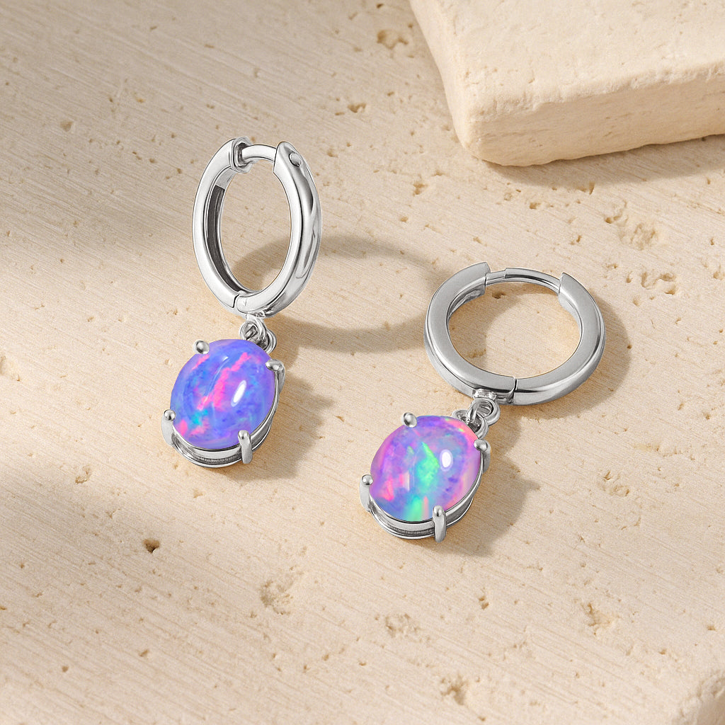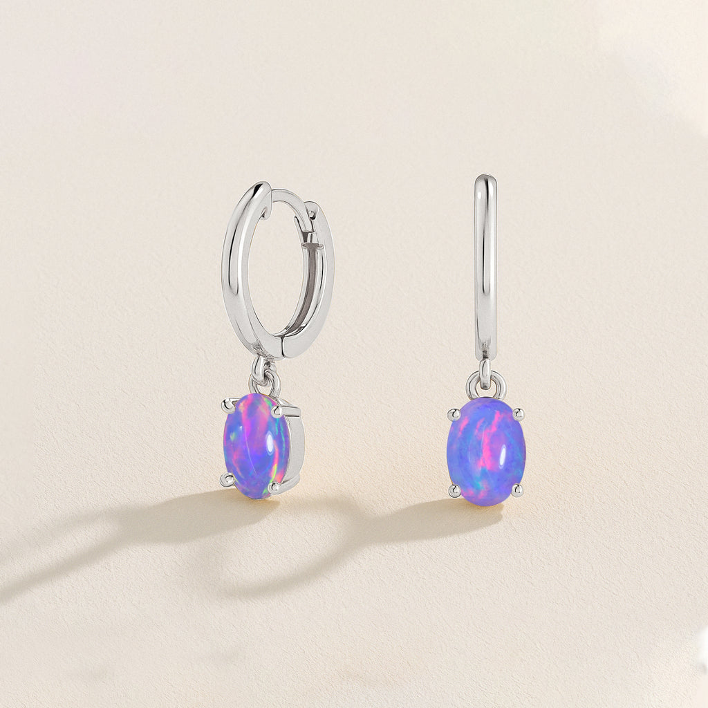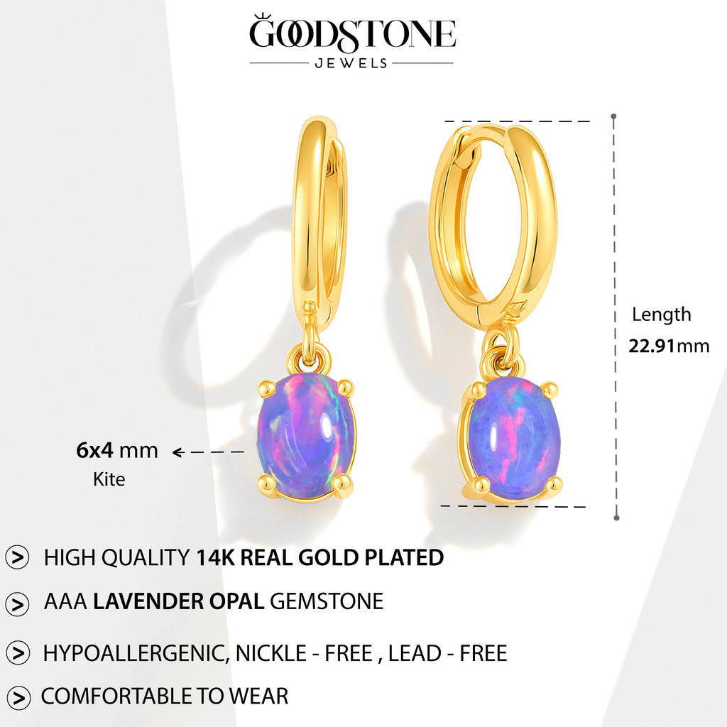 Lavender OpalElevate your elegance with these oval stone drop hoop earrings, featuring luminous Lavender Opal set in premium 925 Sterling Silver. Each earring showcases two smooth, pear shaped stones (8x6 mm) totaling 1.80 carats, perfectly suspended for a graceful, eye catching drop. Designed with precision, the hoop measures 22.91x6.30 mm and comes with a delicate 16"+2" cable chain secured by a lobster clasp, weighing approximately 1.26 gm. Ideal for adding a touch of sophistication to any occasion, these earrings blend timeless charm with contemporary style.