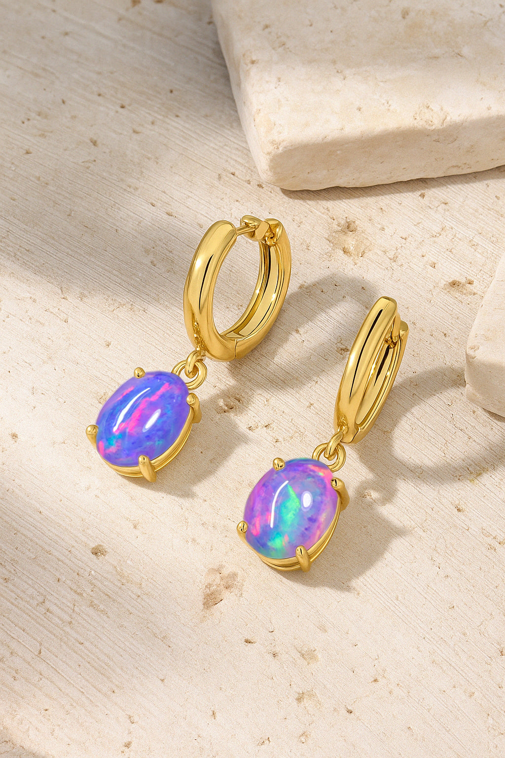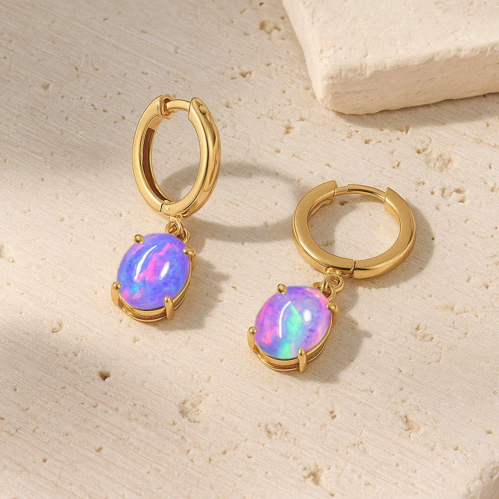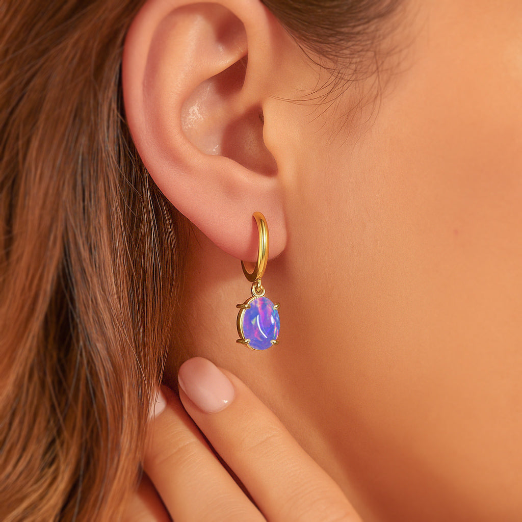 Lavender OpalElevate your elegance with these oval stone drop hoop earrings, featuring luminous Lavender Opal set in premium 925 Sterling Silver. Each earring showcases two smooth, pear shaped stones (8x6 mm) totaling 1.80 carats, perfectly suspended for a graceful, eye catching drop. Designed with precision, the hoop measures 22.91x6.30 mm and comes with a delicate 16"+2" cable chain secured by a lobster clasp, weighing approximately 1.26 gm. Ideal for adding a touch of sophistication to any occasion, these earrings blend timeless charm with contemporary style.