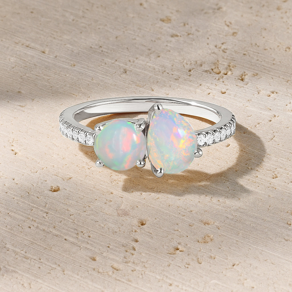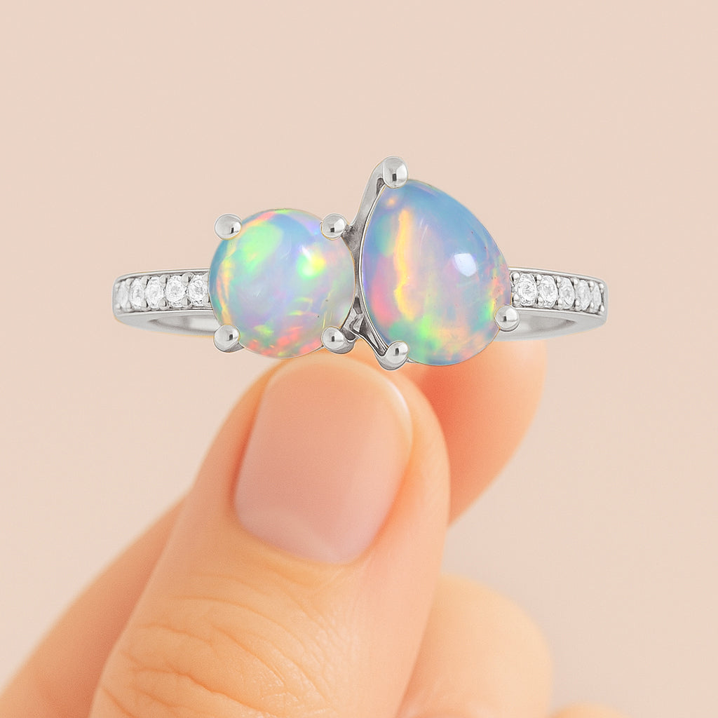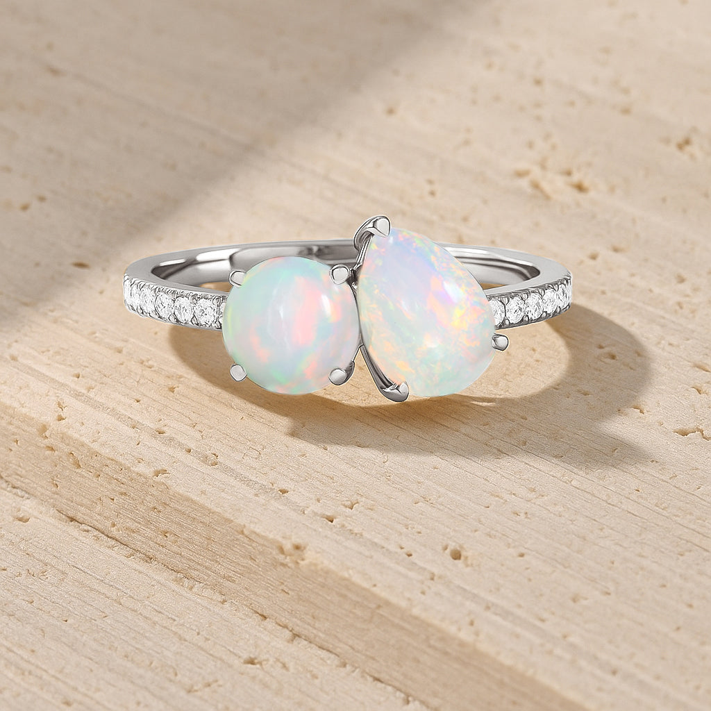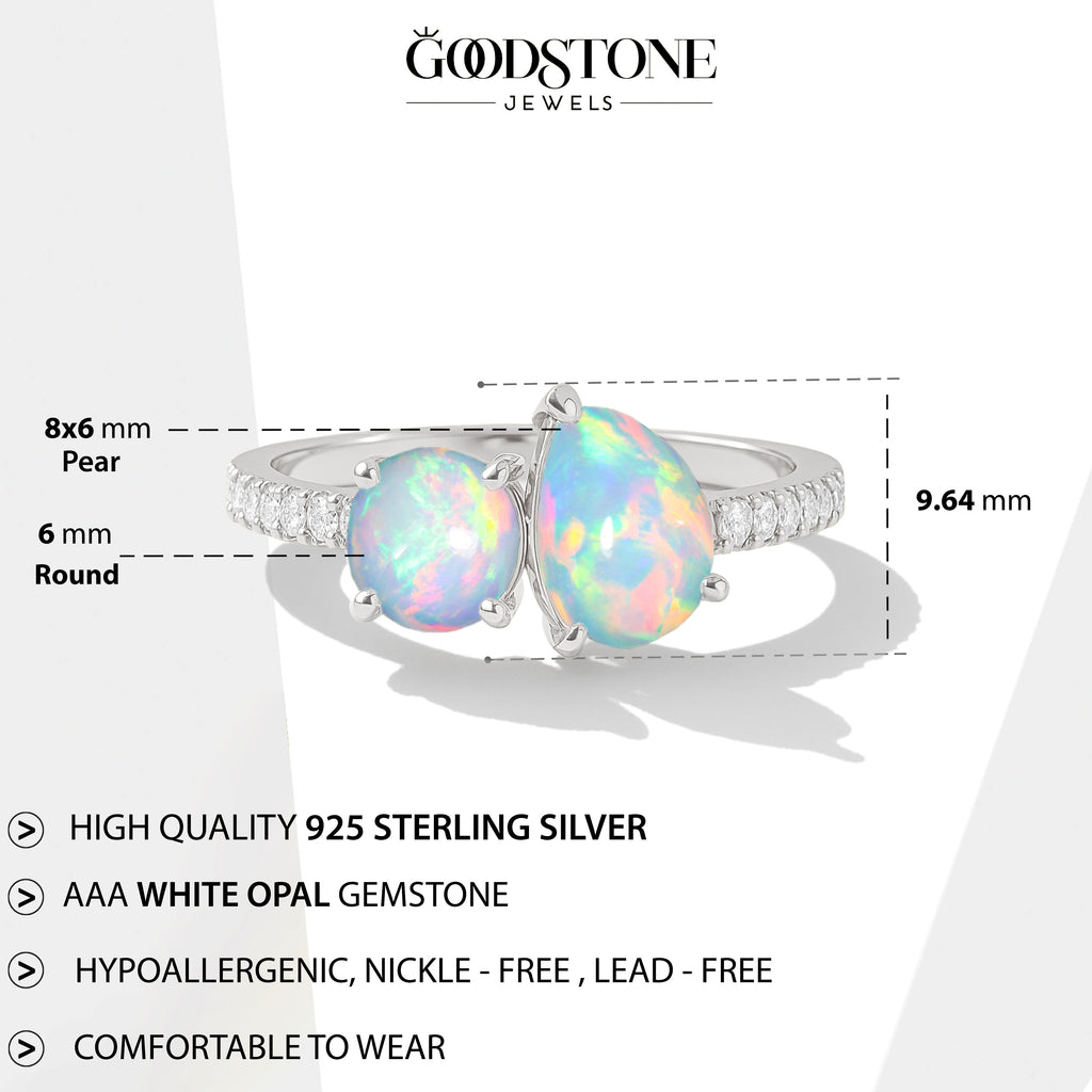White OpalDiscover the perfect blend of elegance and sophistication with this Two Stone Ring, crafted in premium 925 Sterling Silver. Featuring a luminous White Opal pear shaped stone (8x6 mm) paired with a smooth round stone (6 mm), totaling 1.70 carats, this ring exudes timeless charm. Designed for comfort and style, it measures size 9.64 and weighs approximately 3.42 gm. Ideal for special occasions or daily wear, its versatile design makes it a captivating addition to any jewelry collection. Elevate your look with this exquisite, gift worthy piece that radiates refined luxury.