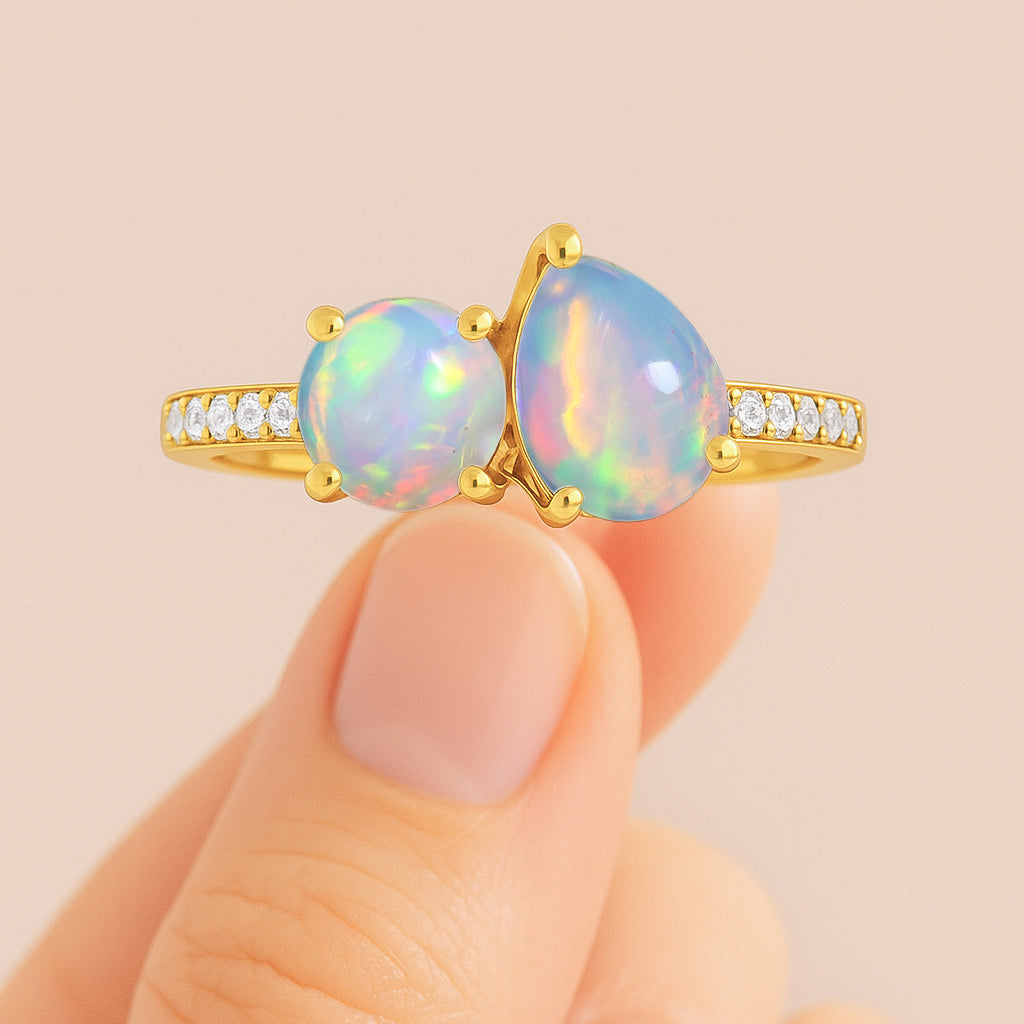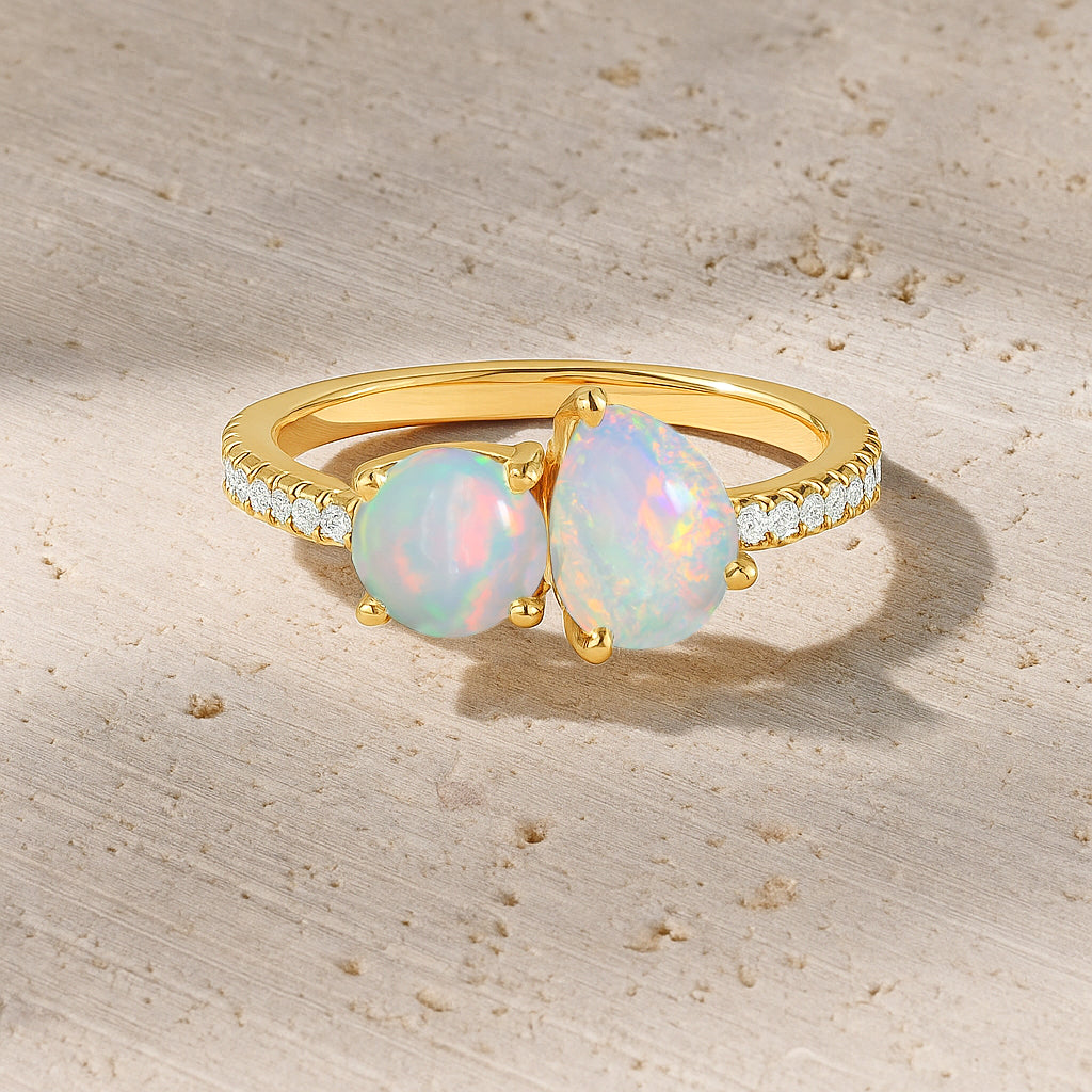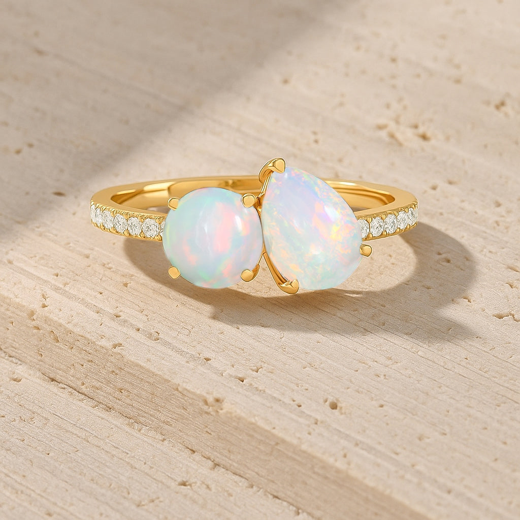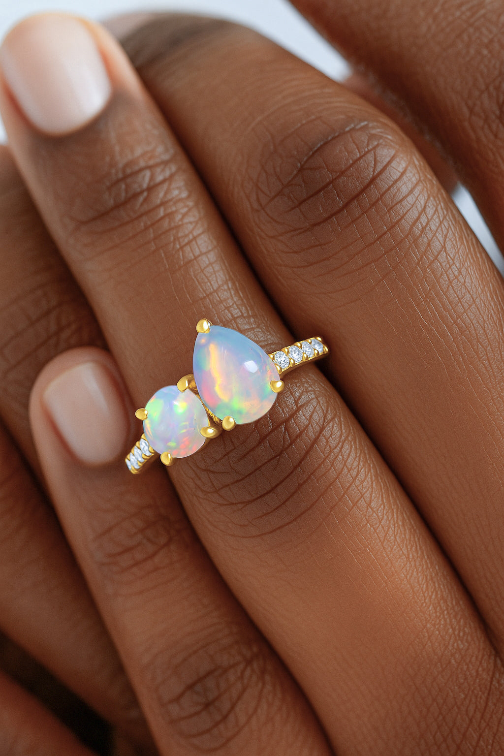 White OpalDiscover the perfect blend of elegance and sophistication with this Two Stone Ring, crafted in premium 925 Sterling Silver. Featuring a luminous White Opal pear shaped stone (8x6 mm) paired with a smooth round stone (6 mm), totaling 1.70 carats, this ring exudes timeless charm. Designed for comfort and style, it measures size 9.64 and weighs approximately 3.42 gm. Ideal for special occasions or daily wear, its versatile design makes it a captivating addition to any jewelry collection. Elevate your look with this exquisite, gift worthy piece that radiates refined luxury.