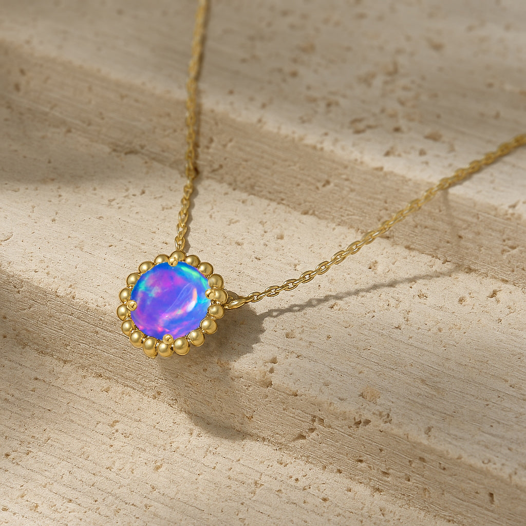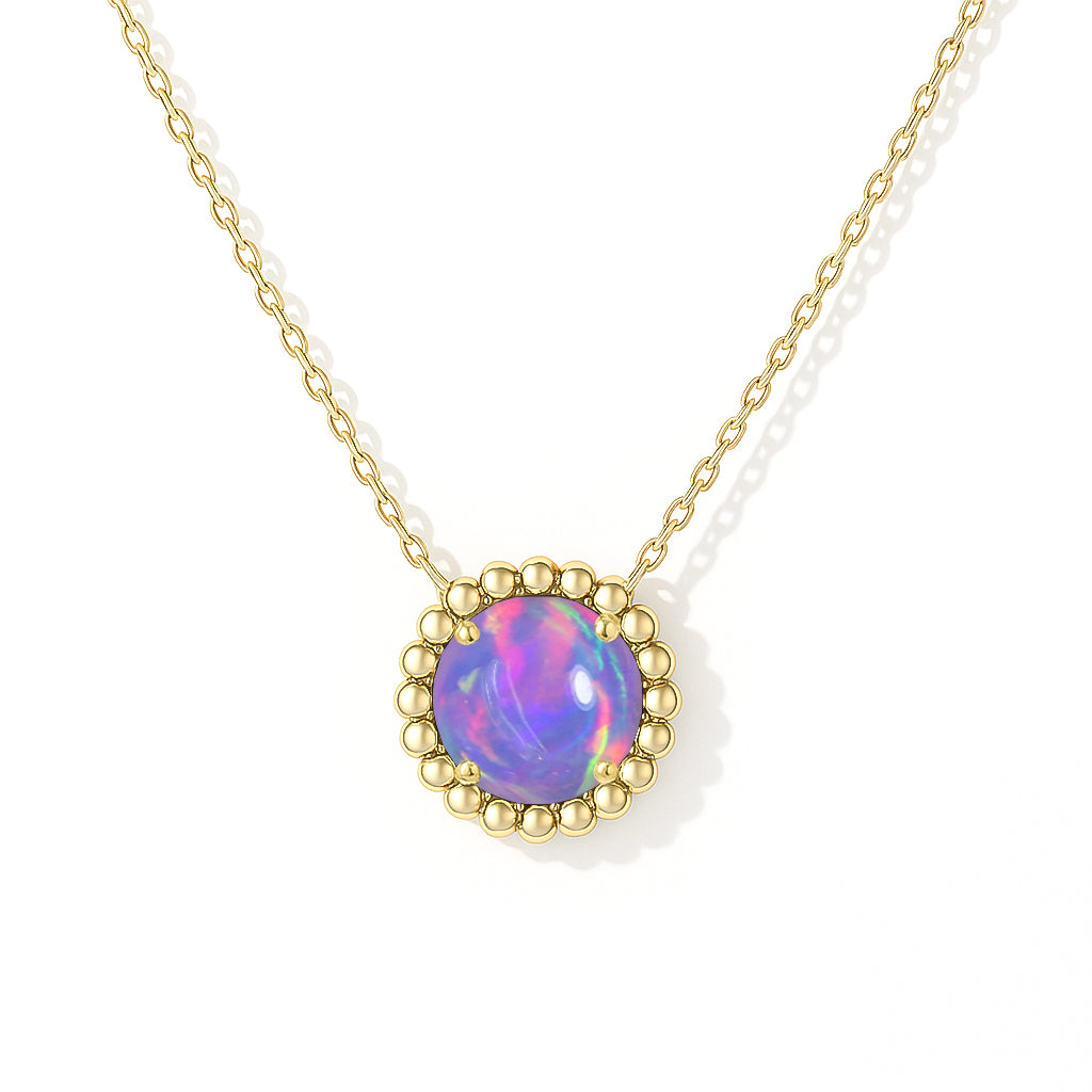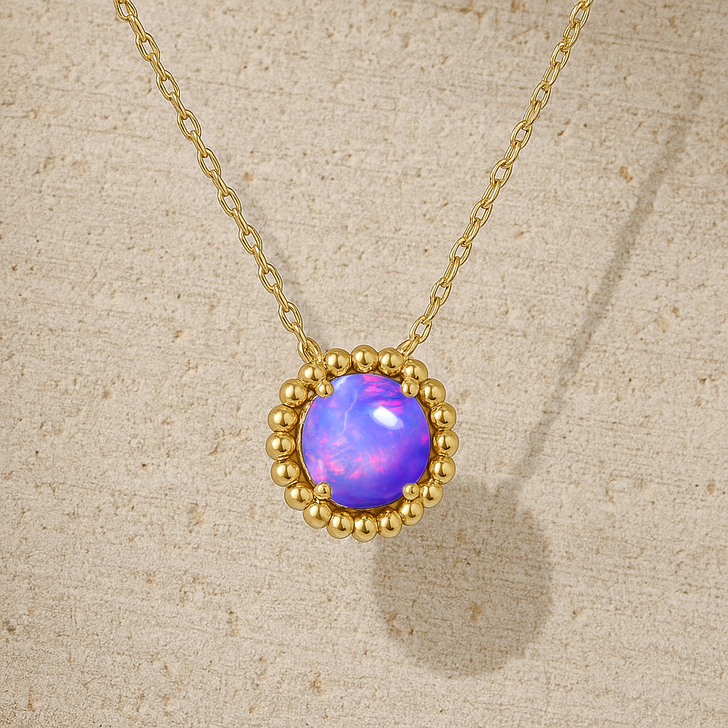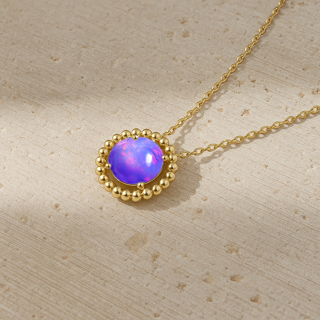 Lavender OpalDiscover timeless elegance with this Lavender Opal Round Solitaire Pendant Necklace, beautifully crafted in 925 sterling silver. The smooth 5 mm round opal (0.50 carat) radiates a soft, enchanting glow, making it perfect for both daily wear and special occasions. Designed with a sleek 7.39x7.40 mm pendant size, it hangs gracefully from a 16"+2" adjustable cable chain secured with a classic lobster clasp. Lightweight at approximately 0.85 gm, this necklace offers effortless comfort while adding a touch of refined luxury. A perfect gift and a stunning addition to any jewelry collection, it brings subtle brilliance to every look.