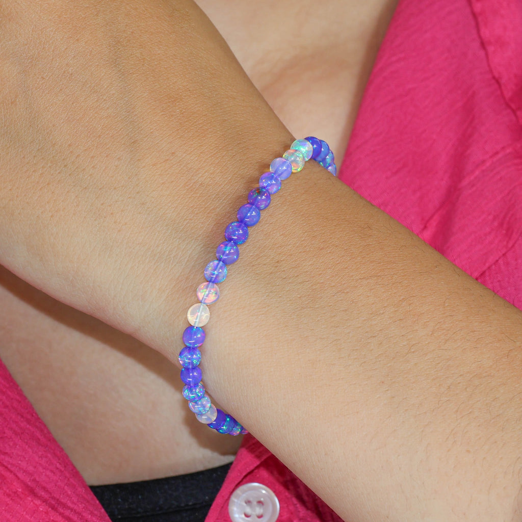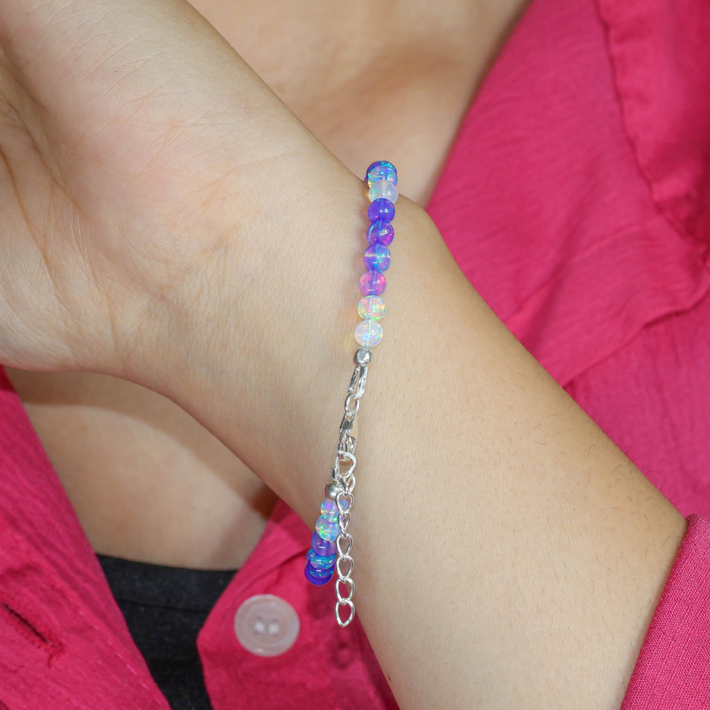 Lavender OpalOur Lavender Opal Shaded Beaded Bracelet for Women is the perfect blend of beauty, craftsmanship, and meaning. Featuring vibrant, natural lavender opal beads in a rainbow of hues, this bracelet brings a unique, radiant charm to any outfit. Whether you’re dressing up for a special occasion or adding sparkle to your daily wear, this bracelet is a timeless accessory that speaks volumes. Handmade with love, each bracelet is strung on a durable yet delicate thread, finished with 925 sterling silver and yellow gold-filled accents for a luxurious look that won’t fade. Choose from sizes 6, 7, or 8 inches for the perfect fit. Its hypoallergenic materials ensure comfort even for sensitive skin, so you can wear it with confidence all day long.
