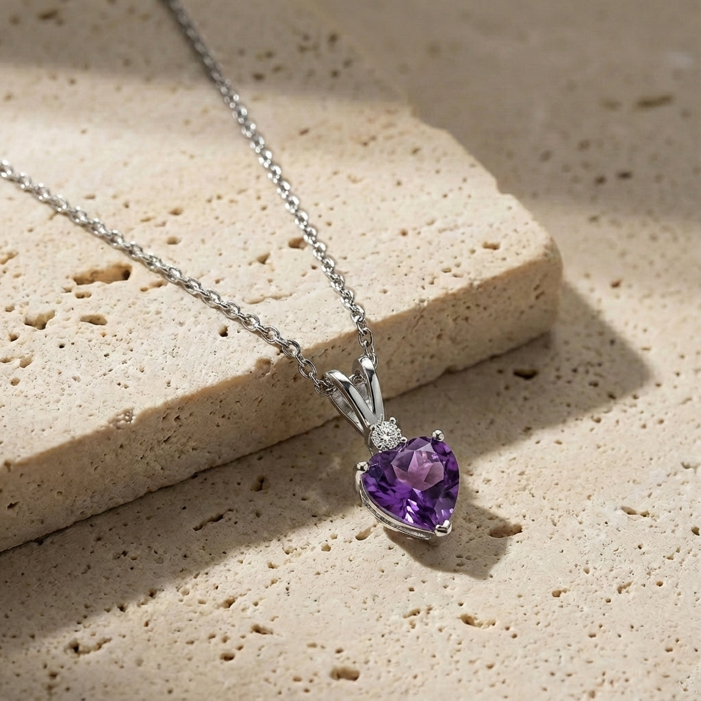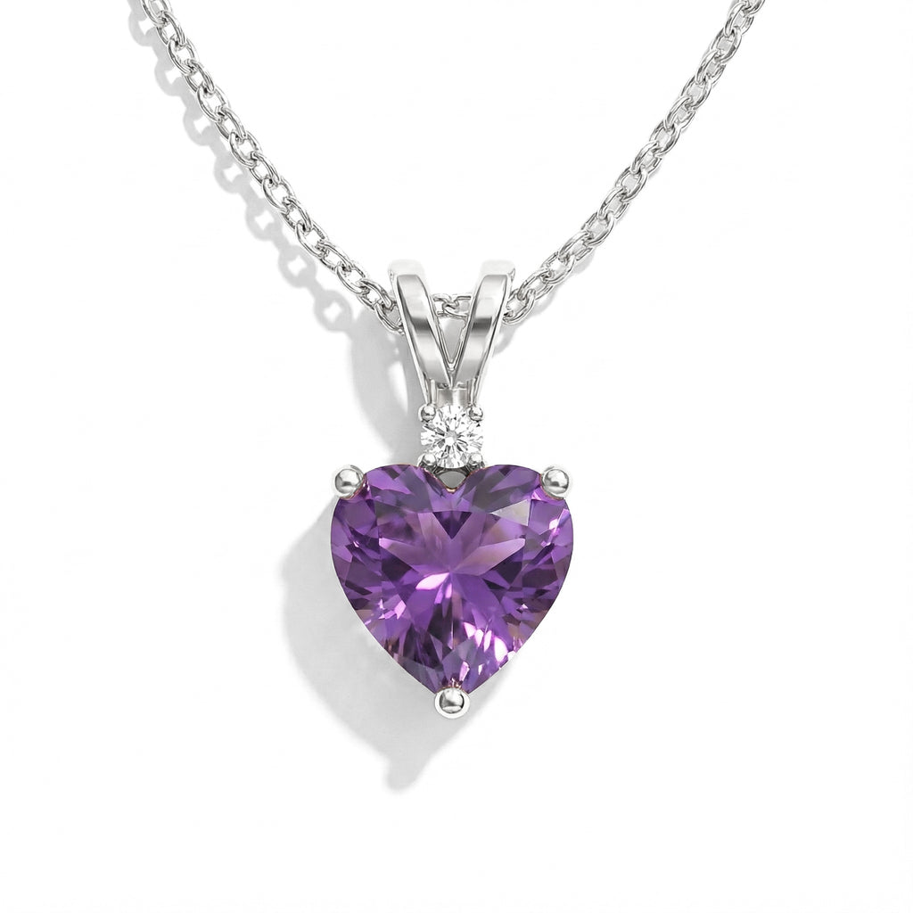 Celebrate timeless elegance with this Natural Amethyst Heart Pendant Necklace in 925 Sterling Silver. Featuring a 7mm, 1.5ct faceted heart-shaped Amethyst, the pendant measures 12.5x7mm and hangs on a 16"+2" adjustable cable chain. Lightweight at 3.5g, it’s perfect for everyday wear or special occasions. The rich purple hue of natural Amethyst symbolizes peace, love, and balance, making this necklace a meaningful gift or a stunning addition to any jewelry collection.