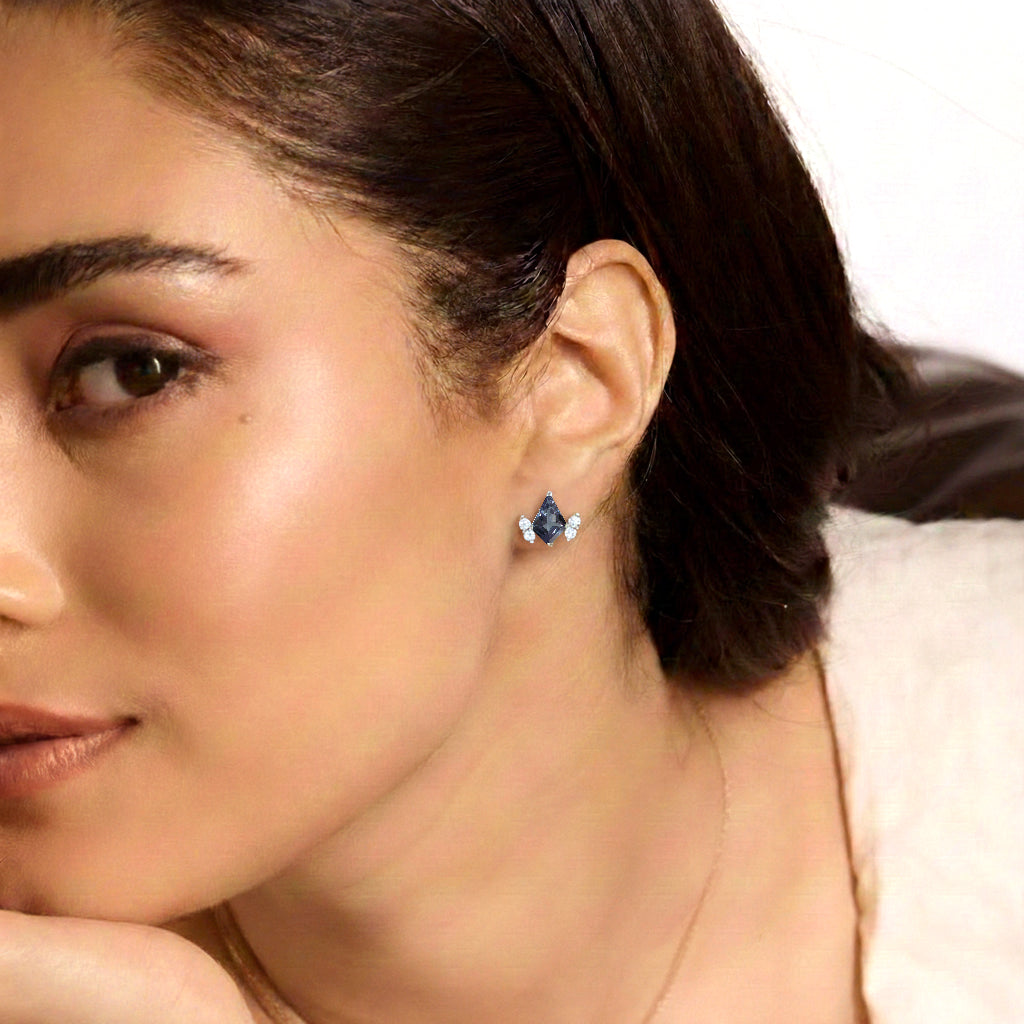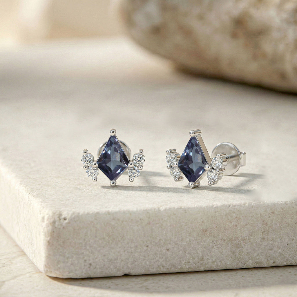 Alexandrite Kite Stud Earrings in 925 Sterling Silver feature 6x4 MM kite-shaped faceted stones (2 pieces, approx. 1 CT total weight). Designed in a sleek geometric silhouette, these 7.83 x 6.86 MM earrings weigh 1.05 GM. Perfect June birthstone earrings for women who love unique, color-changing gemstone jewelry.