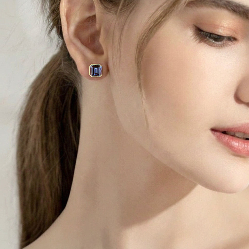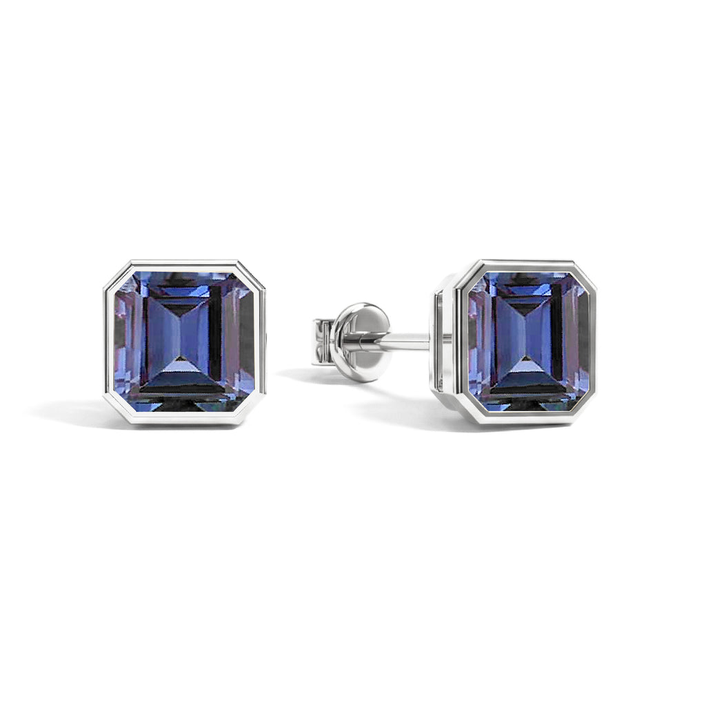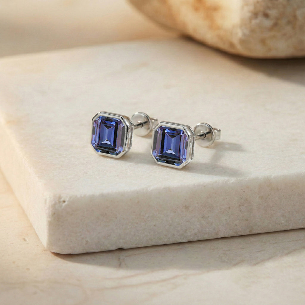Alexandrite Octagon Stud Earring in 925 Sterling Silver 6MM 2ct.