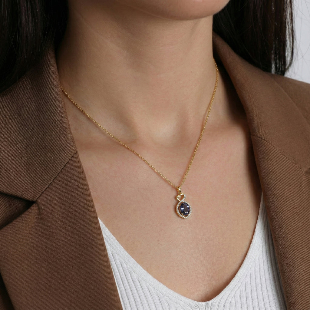 Alexandrite Oval Infinity Twist Heart Pendant Necklace in Yellow Gold Plated 1.2ct