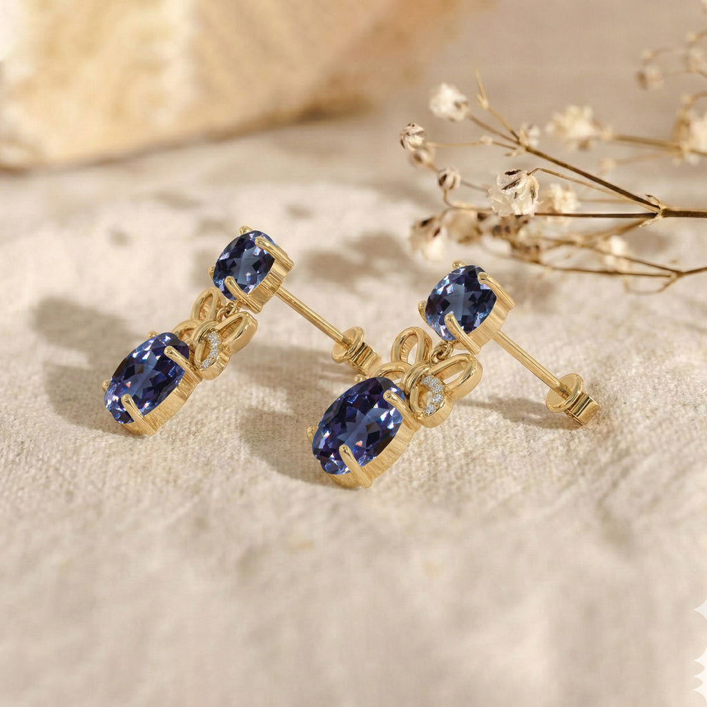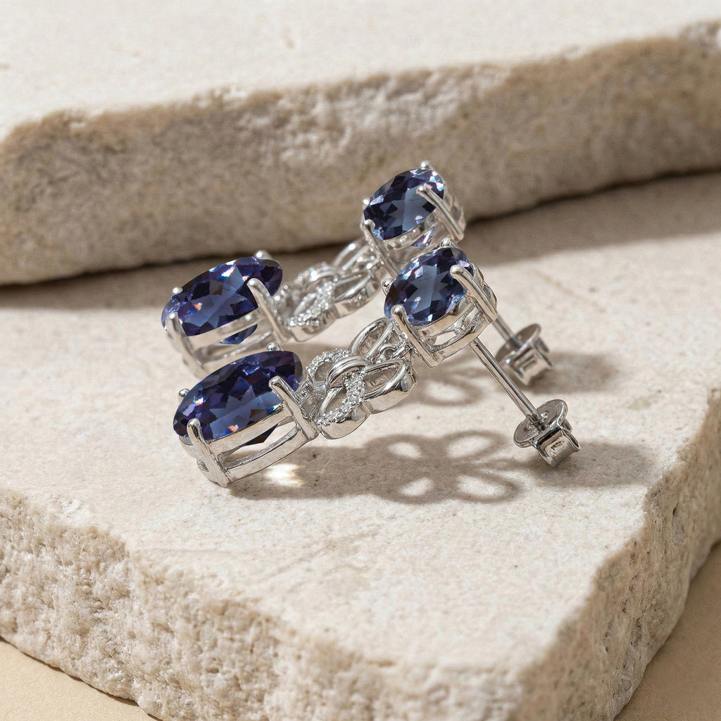 Alexandrite Round and Oval Stud Earring in 925 Sterling Silver 6 MM 5-ct.