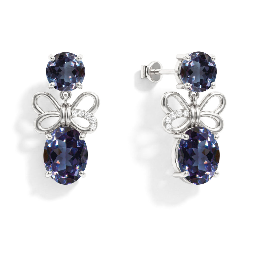 Discover unique beauty with the Alexandrite Round and Oval Stud Earring in 925 Sterling Silver. These elegant earrings feature facet alexandrite stones including 6 MM round stones and 9x7 MM oval stones with a total weight of approximately 5 carats. Known for their fascinating color shift, the stones add a rare and captivating charm. Crafted in 925 sterling silver, the earrings measure 22.23 x 11.03 MM and weigh 4.90 GM, making them comfortable for everyday wear.