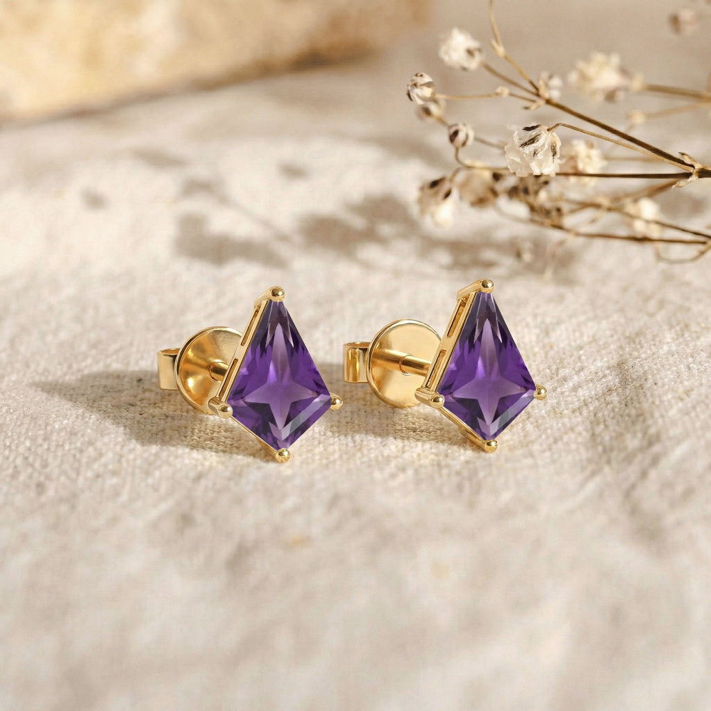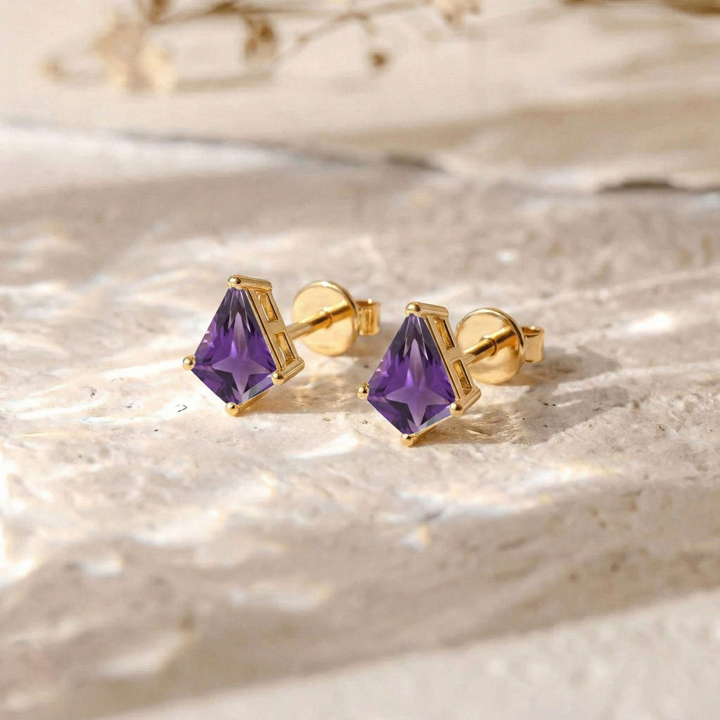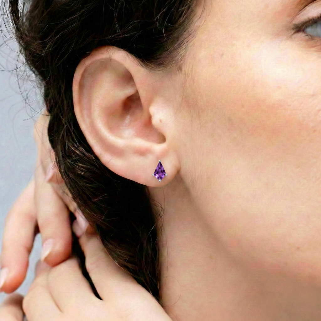 Amethyst Kite Stud Earrings in 925 Sterling Silver 7x5 MM 1.50ct