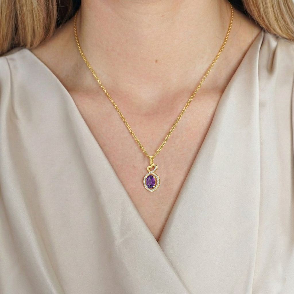 Amethyst Oval Infinity Twist Heart Pendant Necklace in Yellow Gold Plated 1.2ct