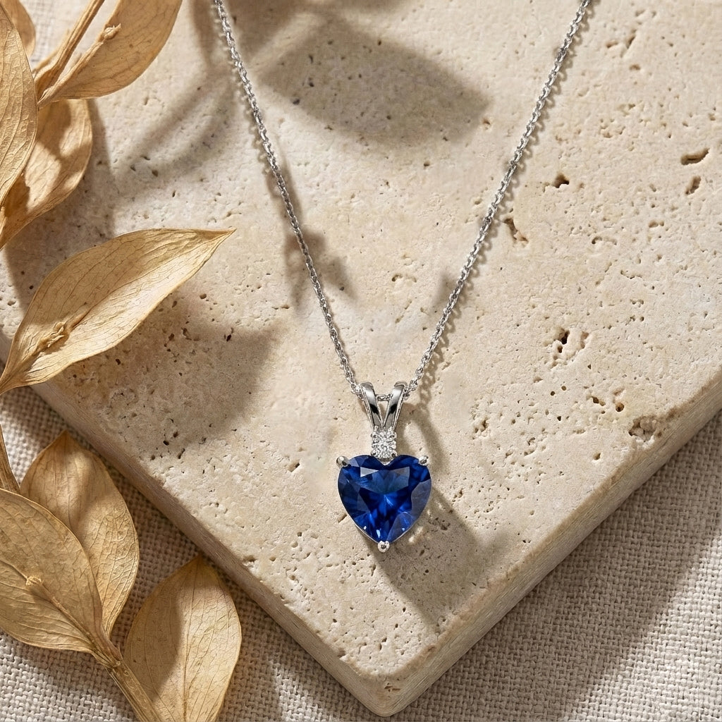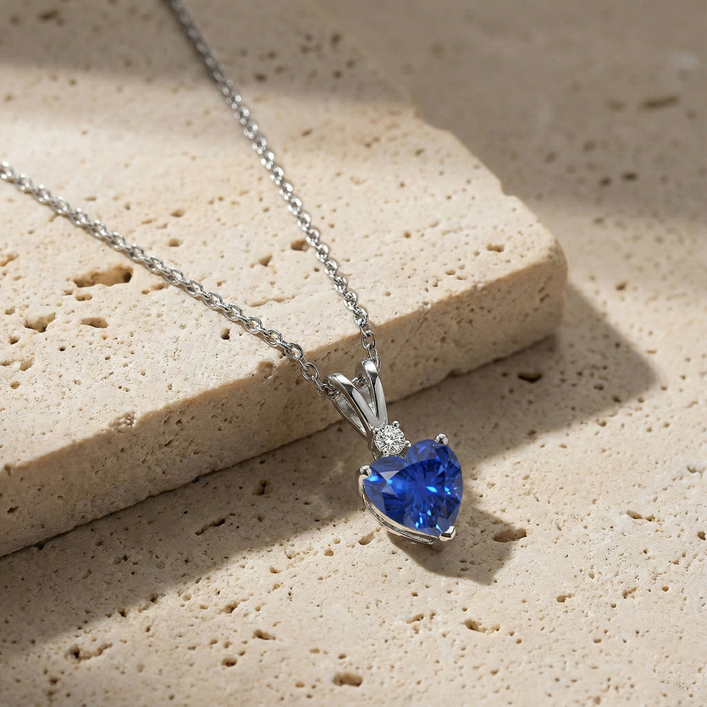 Shine with sophistication with this Blue Sapphire Heart Pendant Necklace in 925 Sterling Silver. Featuring a 7mm, 1.5ct faceted heart-shaped Blue Sapphire, the pendant measures 12.5x7mm and hangs on a 16"+2" adjustable cable chain. Lightweight at 3.5g, it’s perfect for everyday elegance or special occasions. The deep blue hue of Blue Sapphire symbolizes wisdom, loyalty, and love, making this pendant a timeless gift or a stunning addition to any jewelry collection.