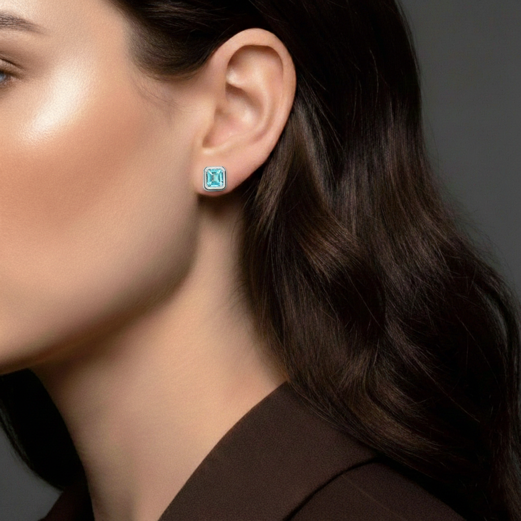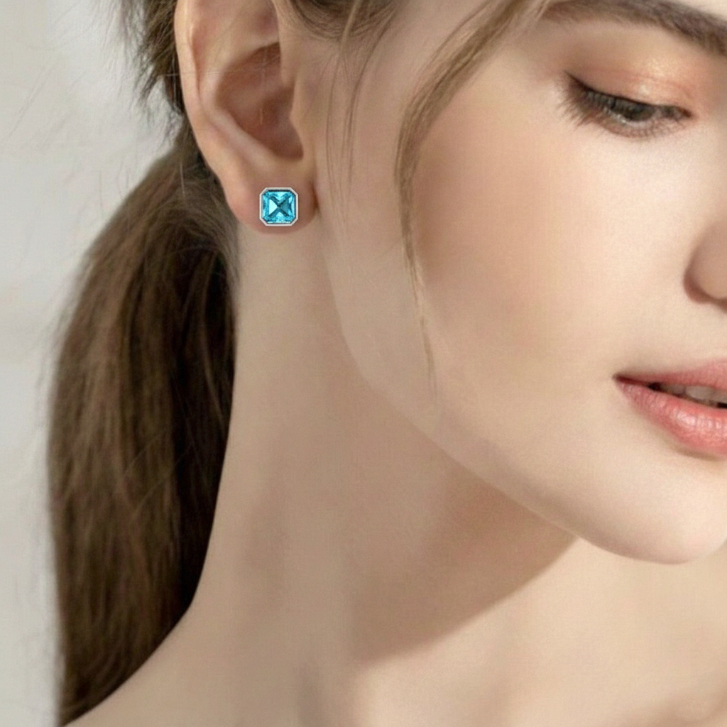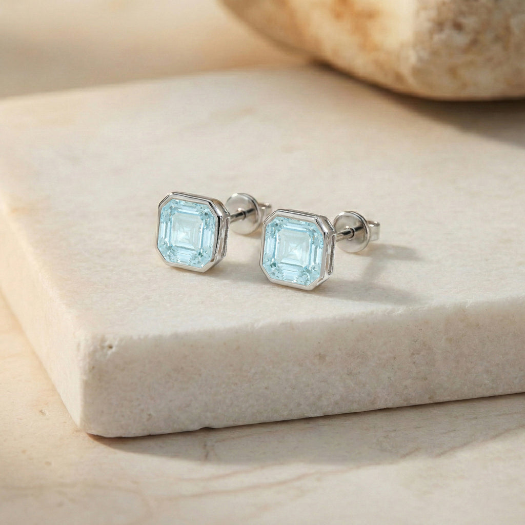 Aquamarine Octagon Stud Earring in 925 Sterling Silver 6MM 2ct.