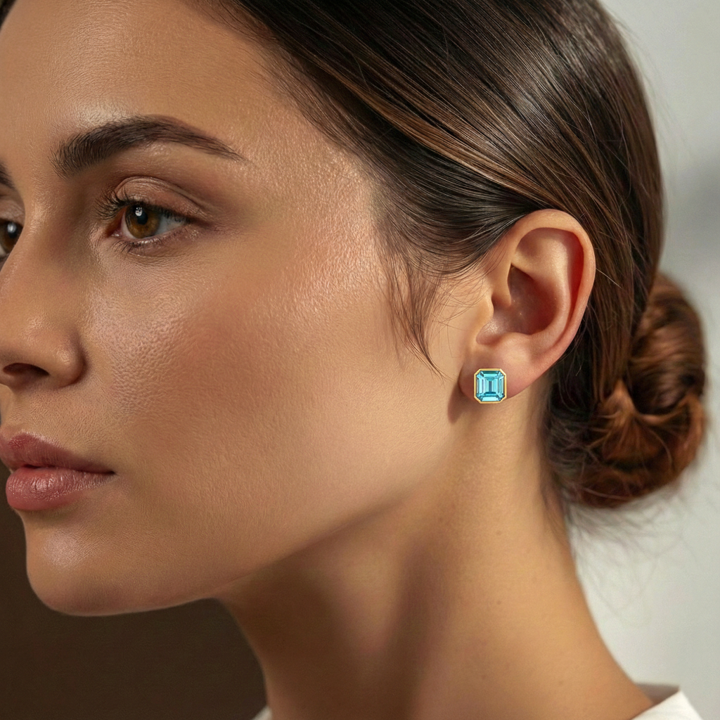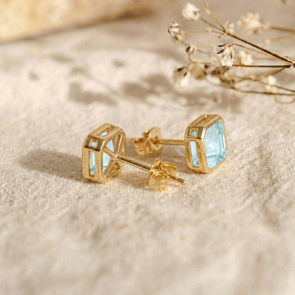 Aquamarine Octagon Stud...