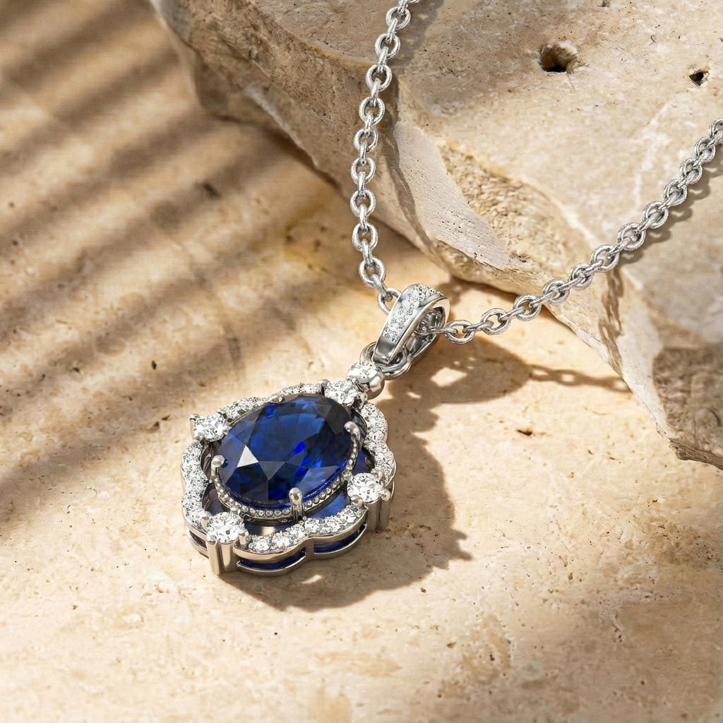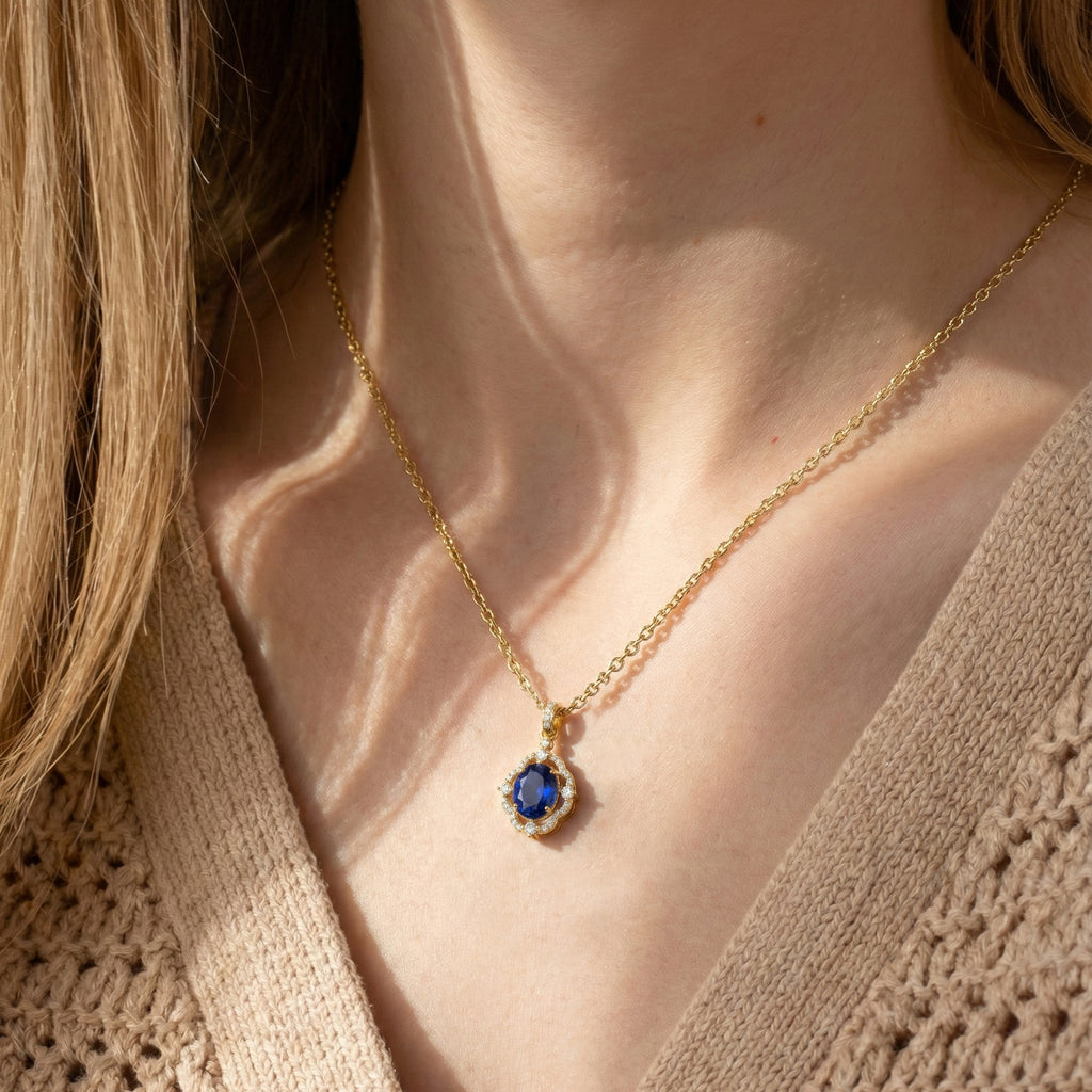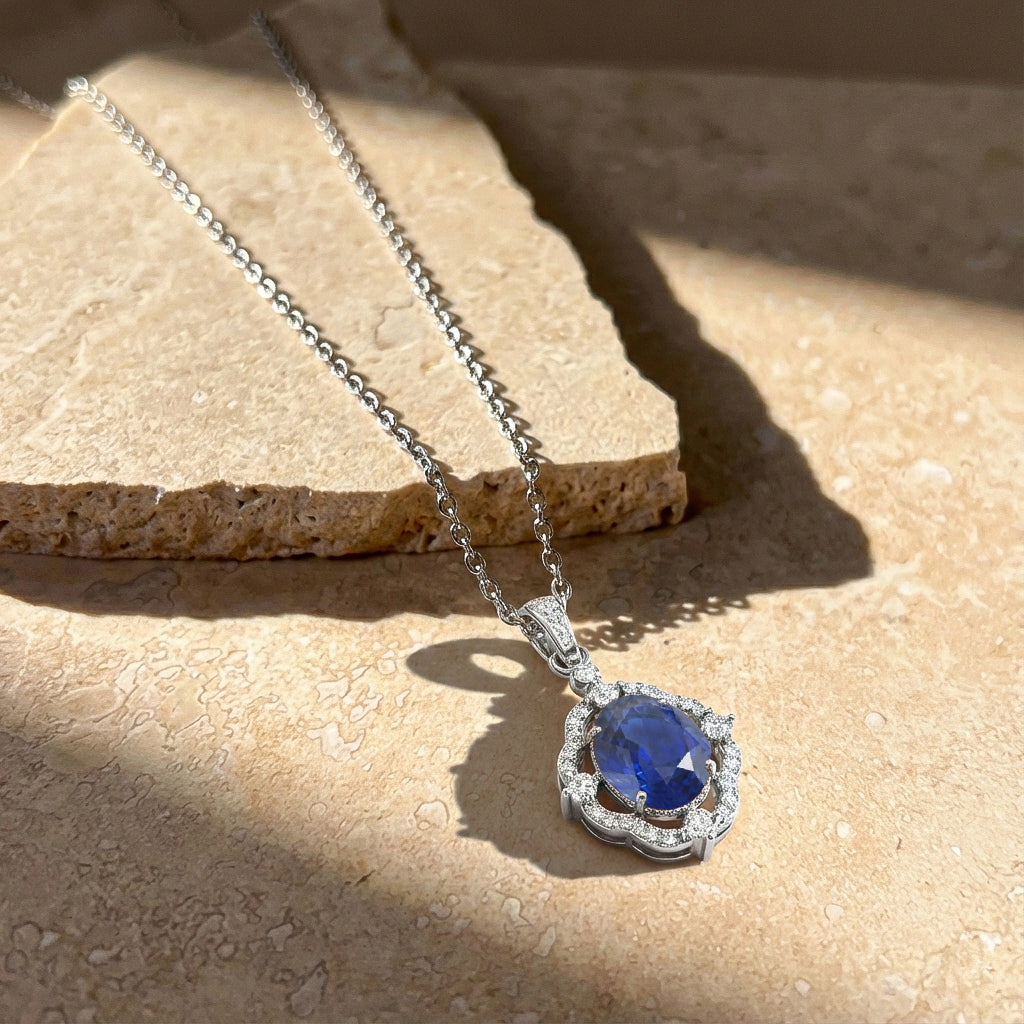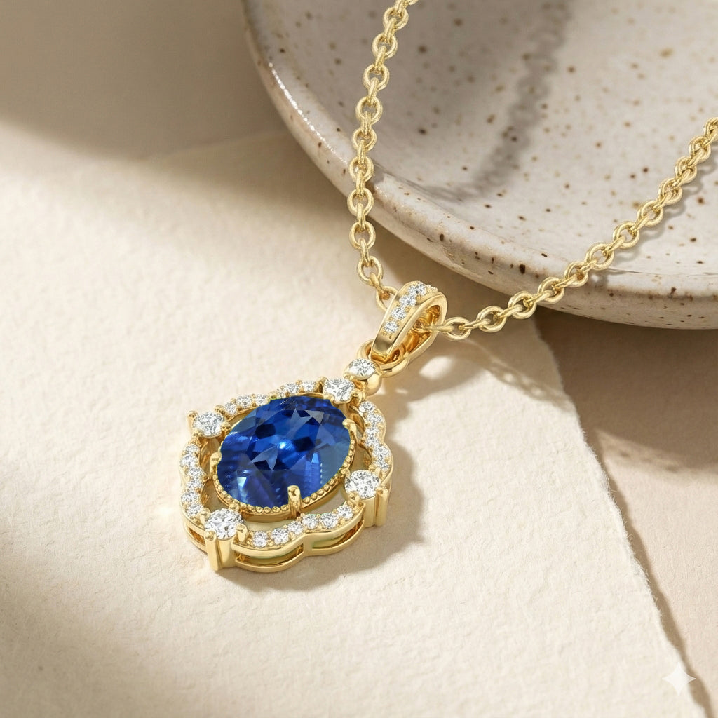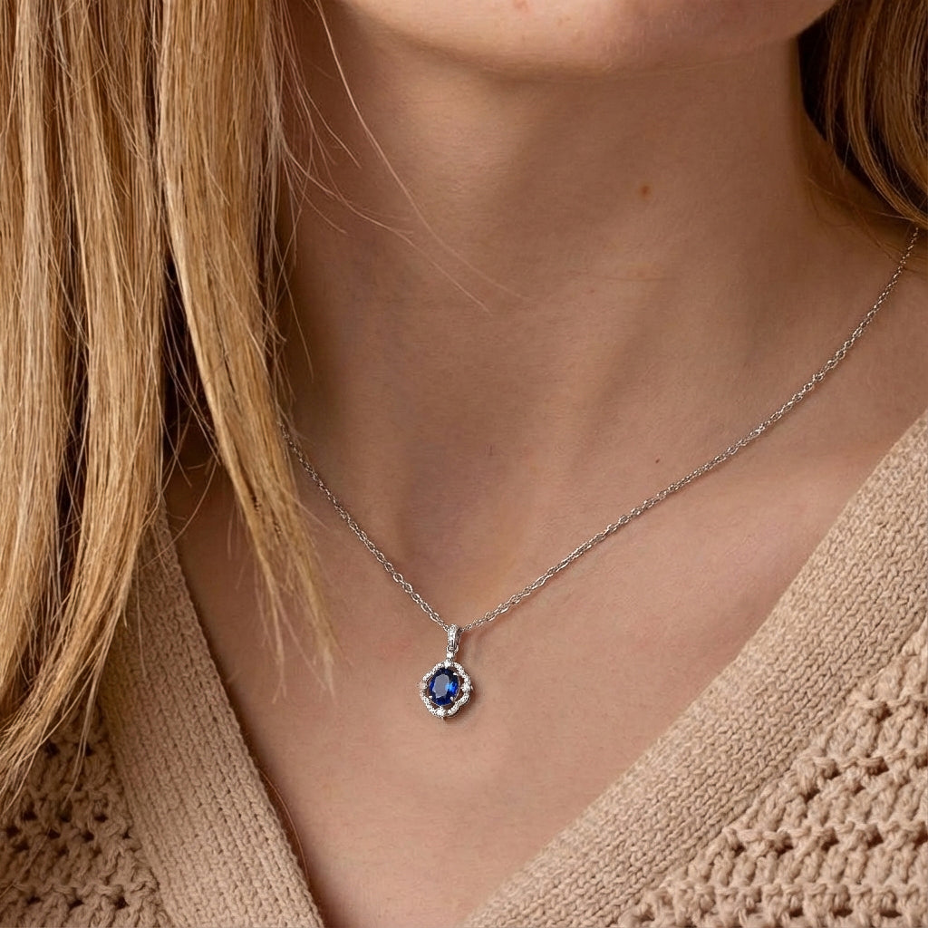Make a statement with our Blue Sapphire Oval Halo Pendant Necklace in 925 sterling silver. Featuring a 1.2ct faceted blue sapphire (8x6mm) surrounded by sparkling CZ stones, this 25x12mm pendant rests on a 16” + 2” adjustable cable chain. Lightweight at approximately 3.5g, it’s perfect for daily wear or special occasions. A timeless, handcrafted piece that blends natural beauty with American craftsmanship—ideal for gifting or enhancing your jewelry collection with elegant sophistication.